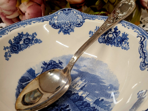 Romantiline Itaalia hõbetatud salatilusikas kannab endas aja vaikset puudutust, peegeldades küünlavalgust ja möödunud õhtute väärikat ilu.