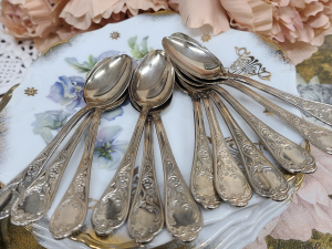 Romantilised Itaalia hõbetatud teelusikad kannavad endas aja vaikset puudutust, peegeldades küünlavalgust ja möödunud õhtute väärikat ilu.