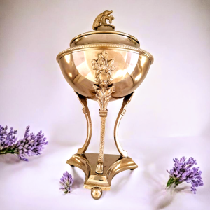 Kaunilt läikiv hõbetatud pind peegeldab valgust väärikalt ning armsad lilleornamendid lisavad toosile romantilise ja veidi nostalgilise ilme. Kolmel kaarduval jalal seisev vintage toos mõjub õrna lauakaunistusena, mis toob ruumi soojust ja ajatut elegantsi.