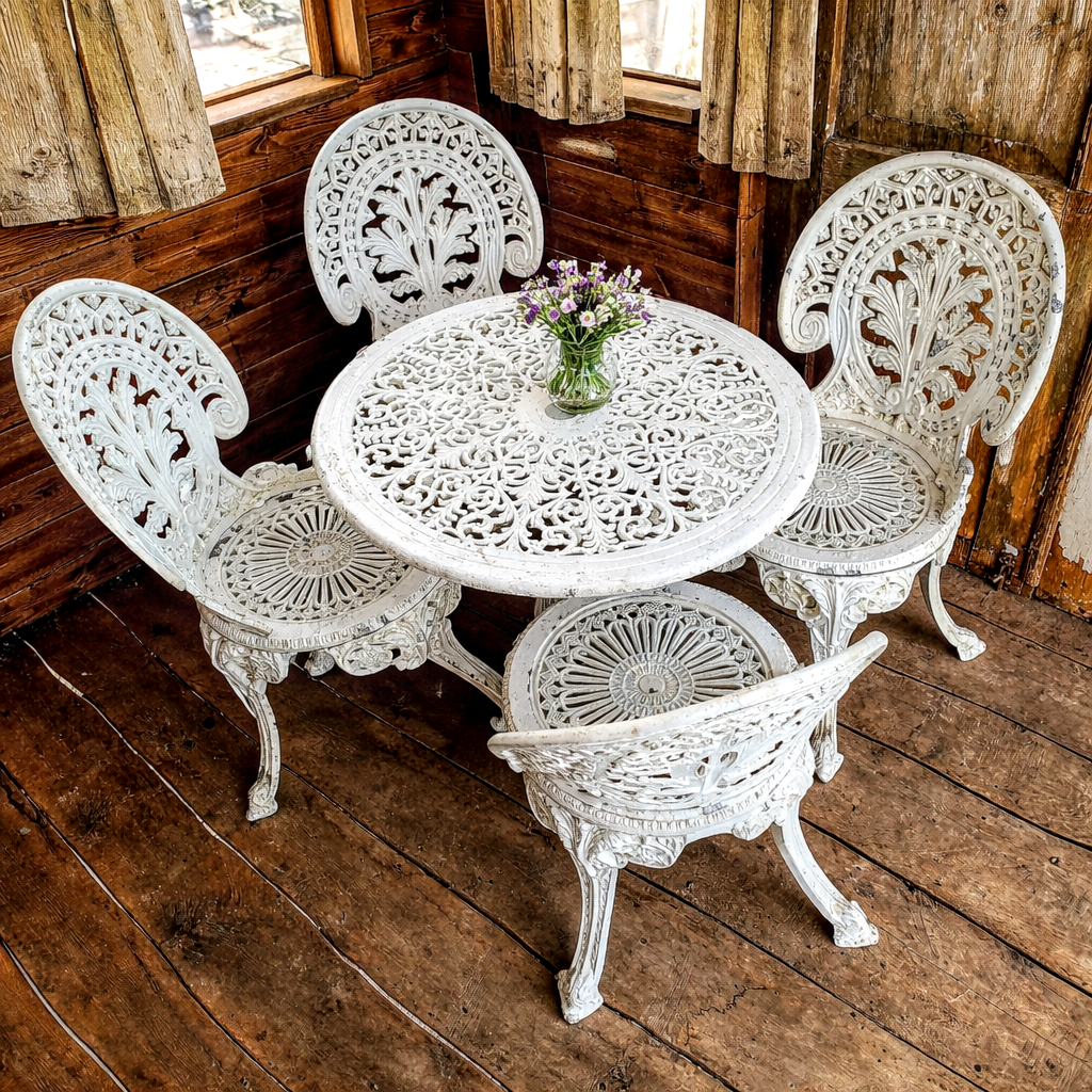 Victoria stiilis malmist aiamööbli komplekt – ajatu elegants, mis ei küsi tähelepanu, vaid loob selle.