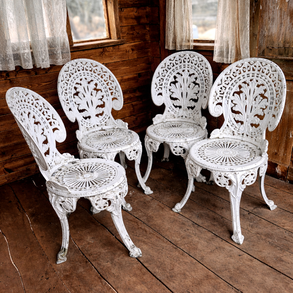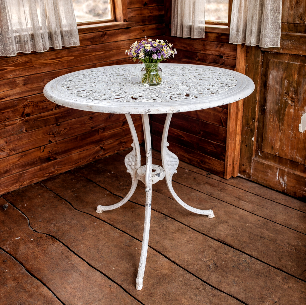 Valmistatud vastupidavast malmist, mille peen ornamentika ja ajast puudutatud valge viimistlus kannavad endas vaoshoitud luksust ja kestvat ilu. Iga detail on justkui vaikne viide ajastule, kus väärtustati nii vormi kui tunnet.