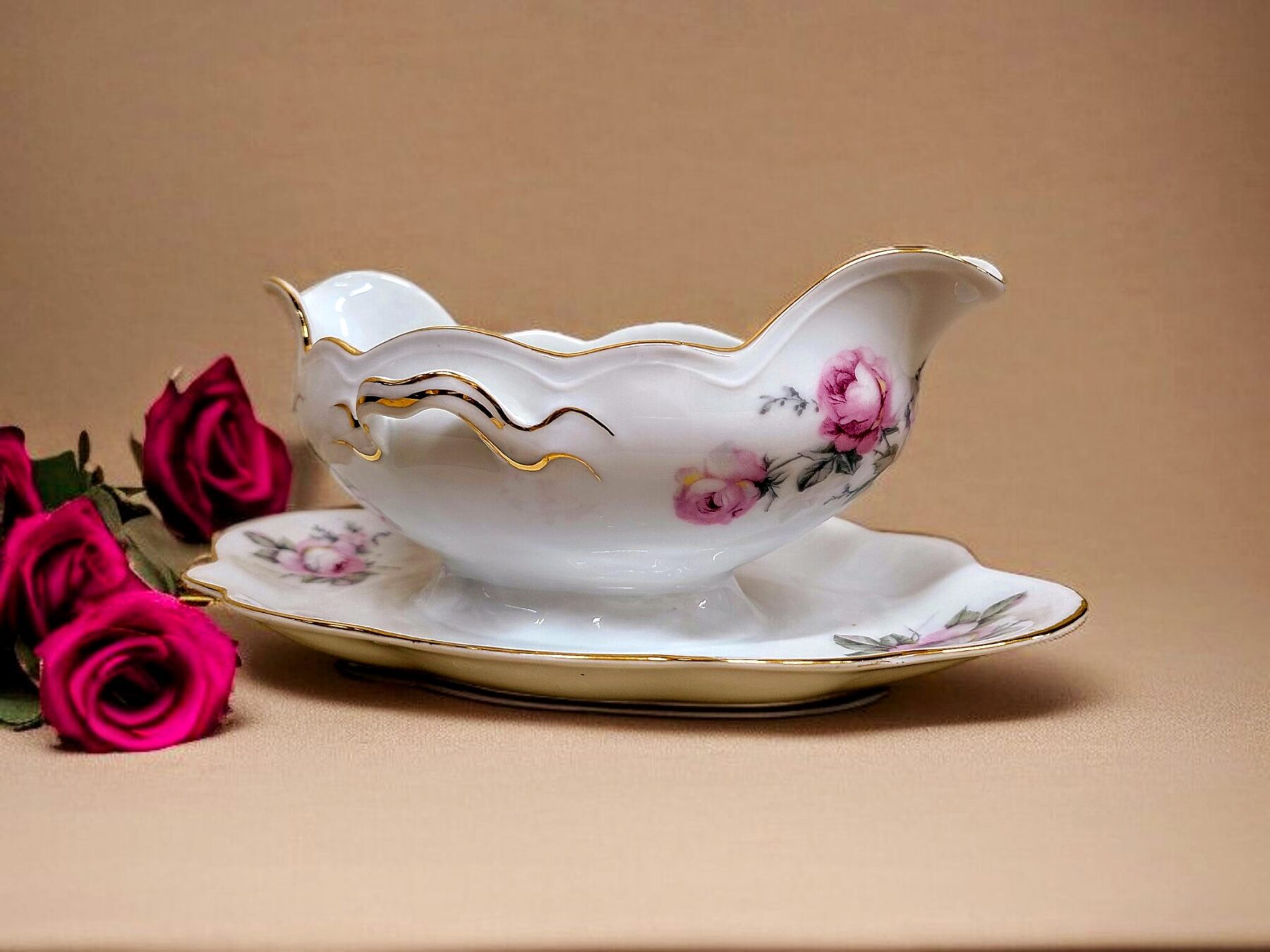 Õrnade rooside ja kuldäärtega Altwasseri portselankann, sündinud 20. sajandi alguse Sileesias. Ajatu serveerimisese, toob lauale vana-euroopaliku romantika.