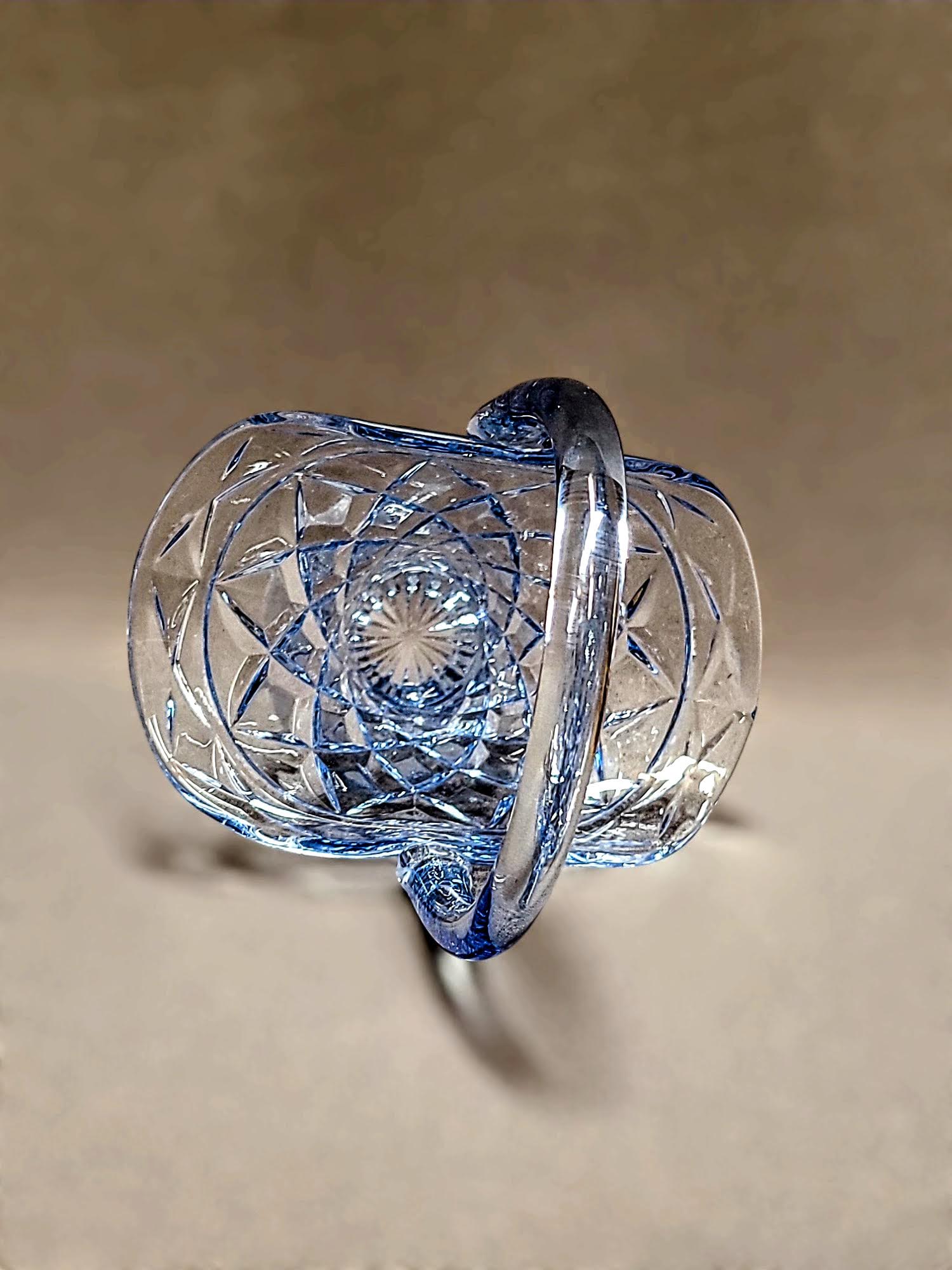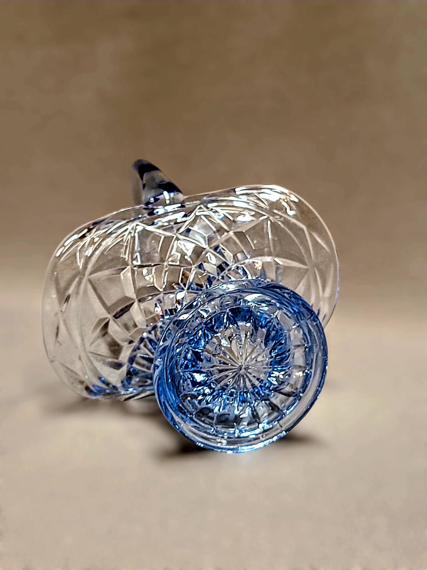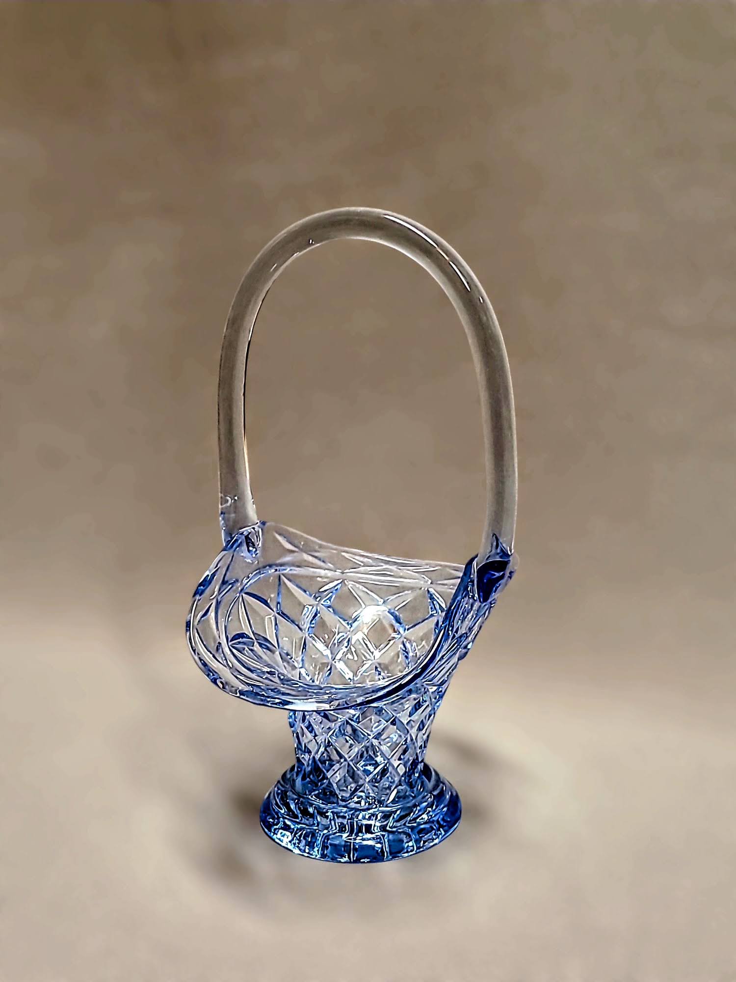 Armas klaasist korv on tõeline pilgupüüdja – õrna helesinise tooni ja teemantlõikelise mustriga disain lisab vintage-hõngu. Käepärane sang muudab korvi nii praktiliseks kui ka dekoratiivseks.