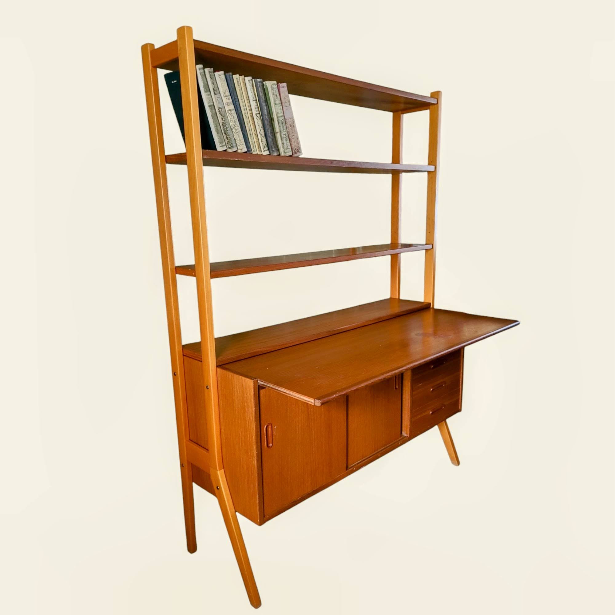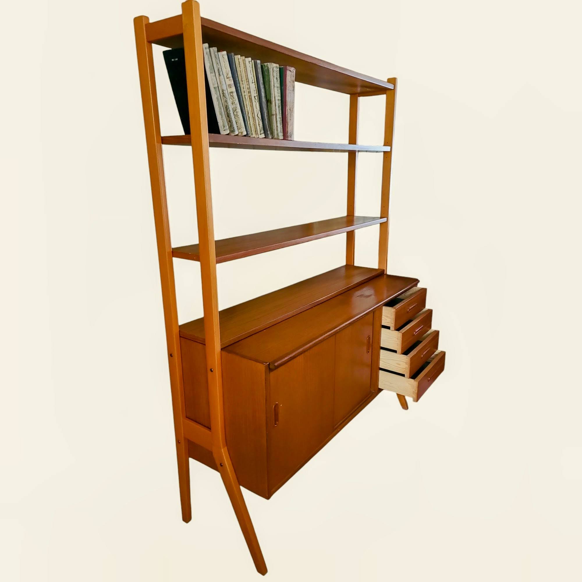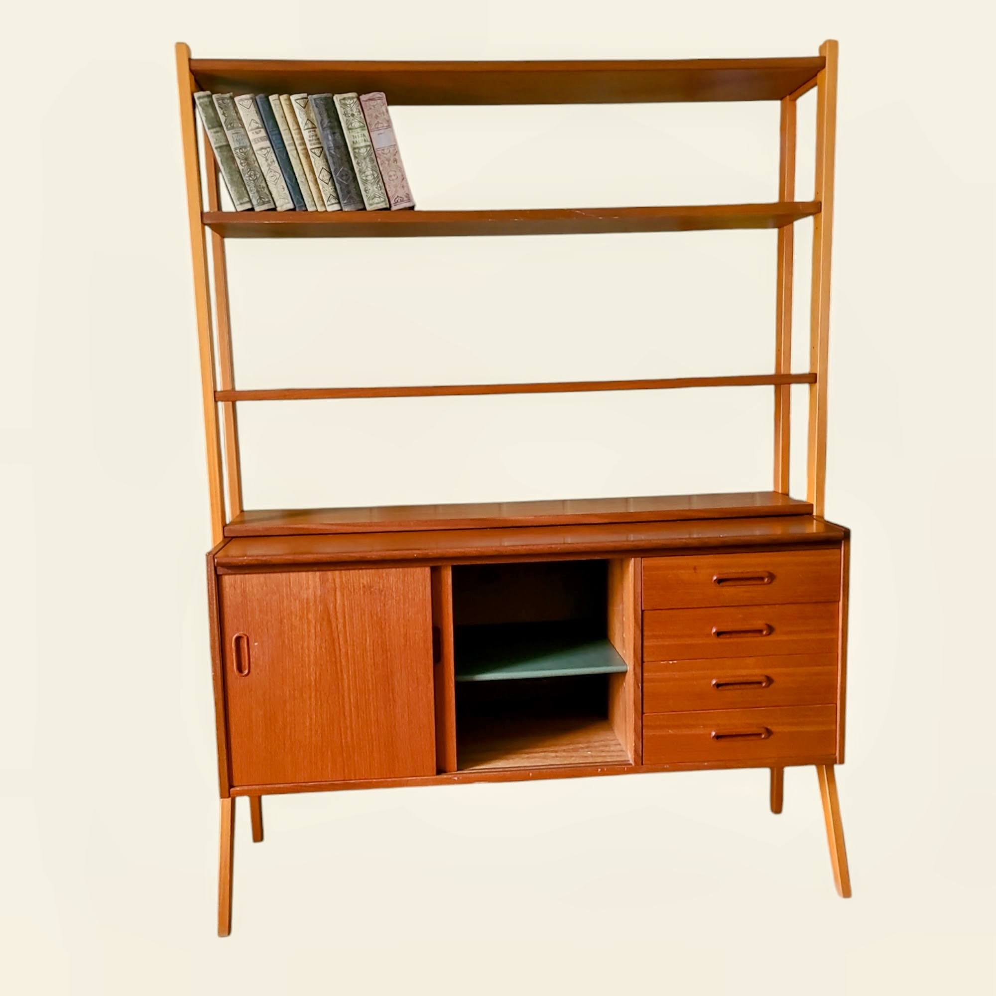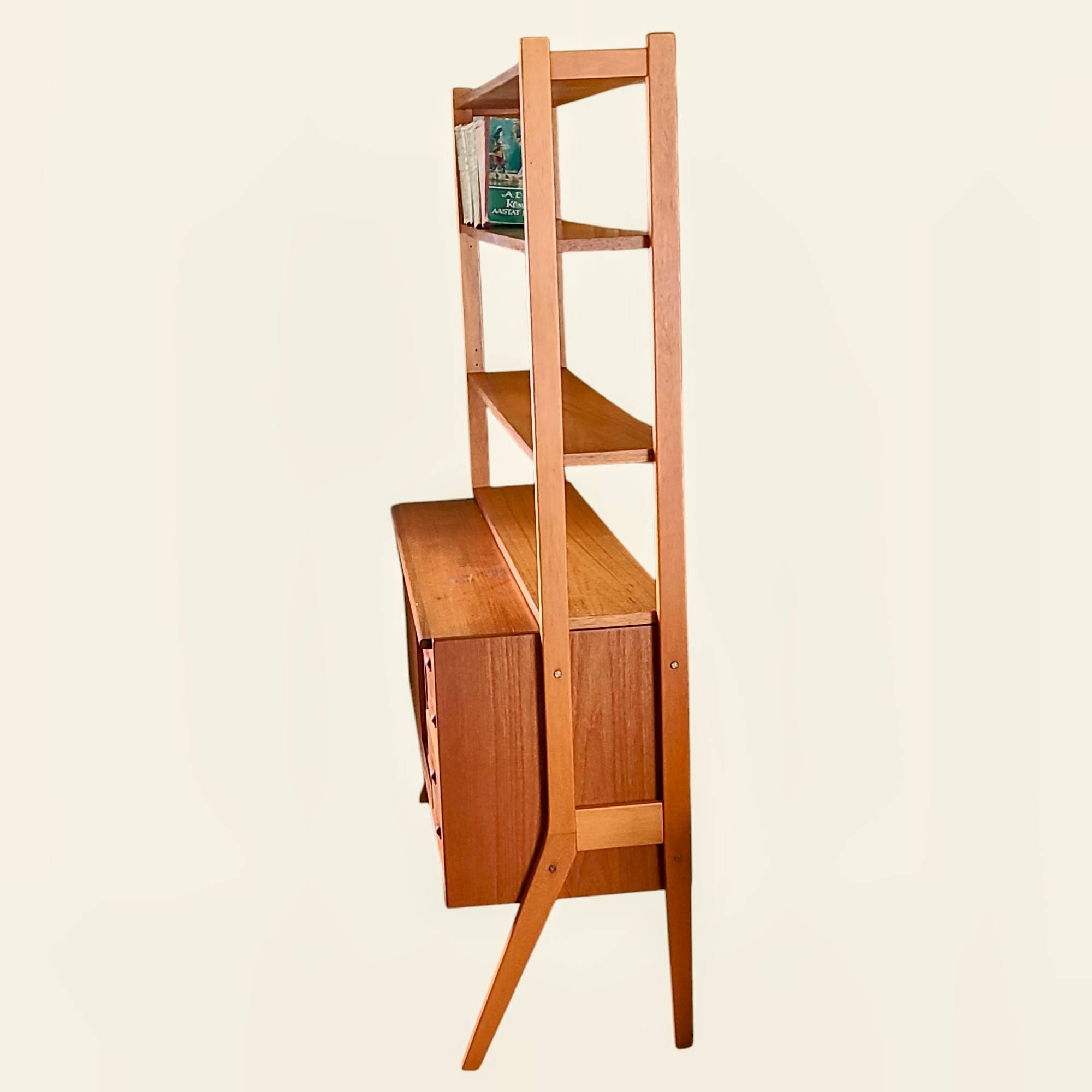 Rootsi disainer Bengt Ruda looming 1960. aastatest – tiikpuust valmistatud elegantne kummutiga raamaturiiul, ühendab endas praktilisuse ja ajatult kauni disaini. Skandinaavia kontori raamaturiiul sobib suurepäraselt nii tööruumi kui ka elutoa sisustuselemendiks.