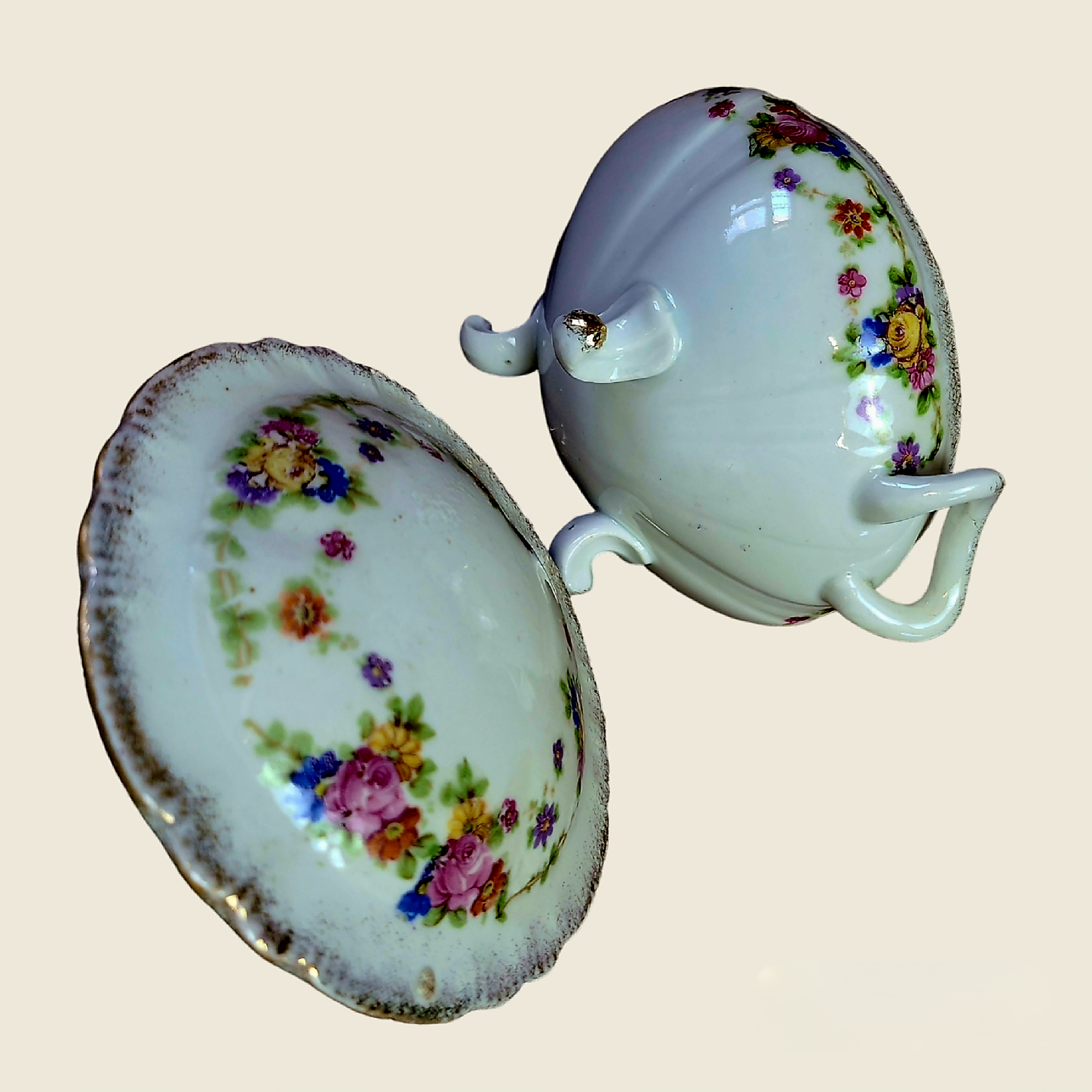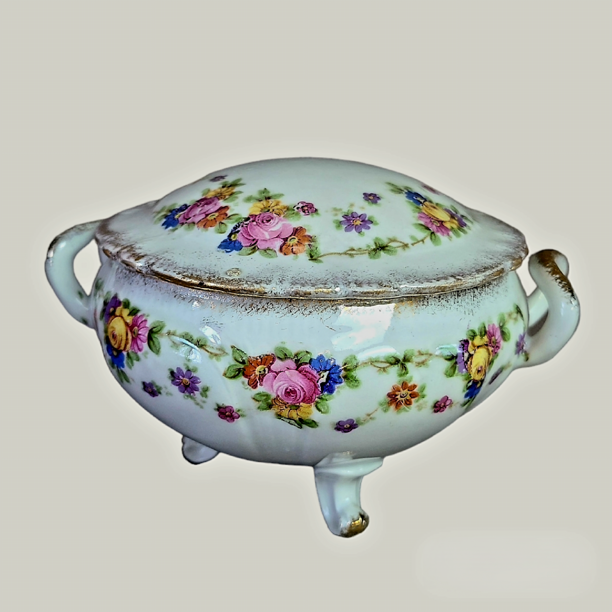 Kaunis ja omanäolise ehtetoos, mis kiirgab rohkete lillede ja kuldsete aktsentidega elegantsi. Ümmargune kolmel jalal portselanist kaanega toos on kaunis kunstiteos, mis loob teie interjööri romantilise ja ajatult kauni õhkkonna. Praktiline hoiupaik teie kallimatele ehetele või muudele aksessuaaridele.