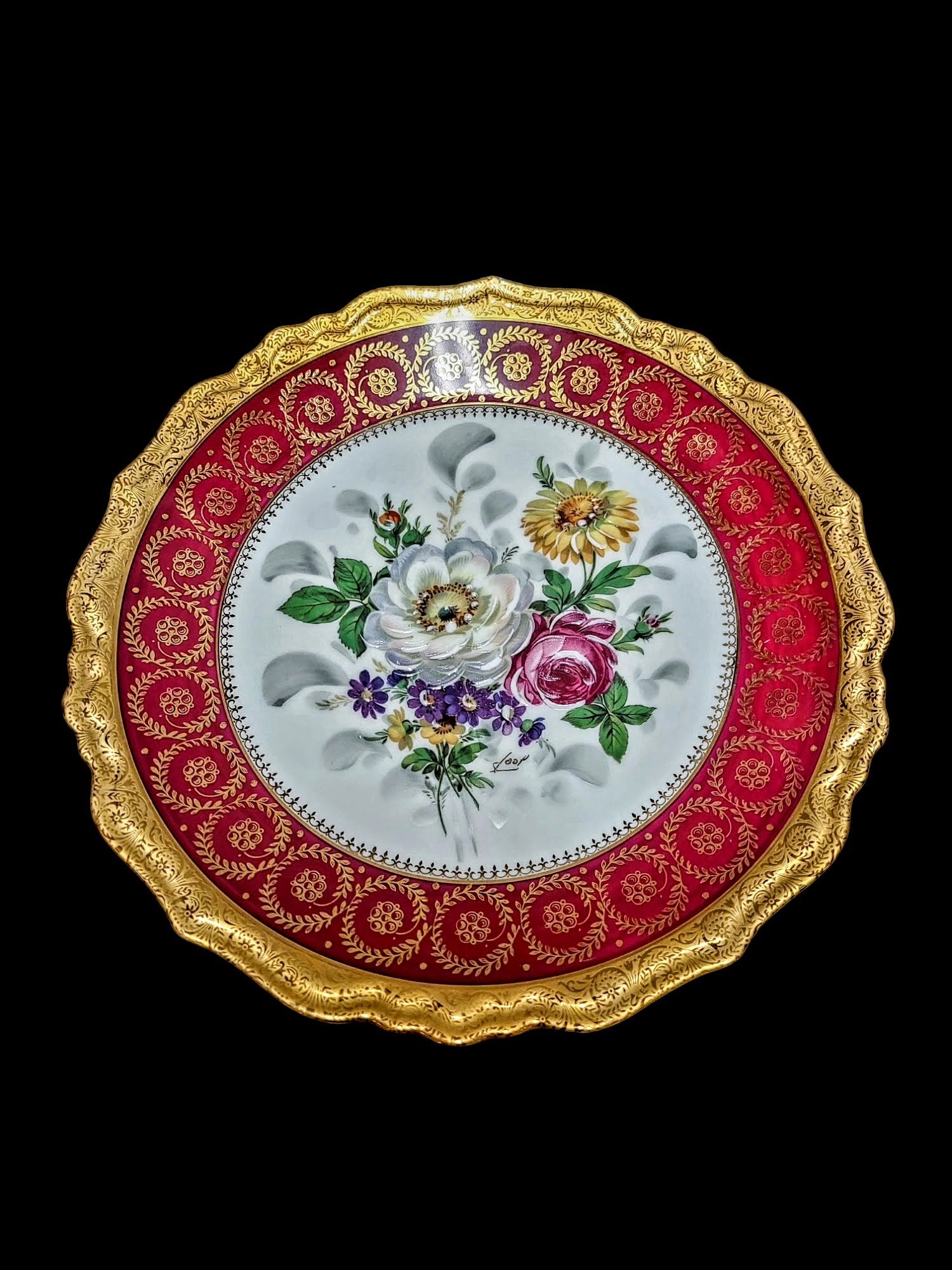 Luksuslik Limoges’i ümmargune vaagen Prantsusmaalt, täiuslik kombinatsioon ajatu elegantsi ja kunstilise meisterlikkuse vahel. Kaunis vaagen on kaunistatud rikkaliku kullatud äärise ja detailse lillemustriga, mis toob esile Limoges’i traditsioonilise rafineerituse.