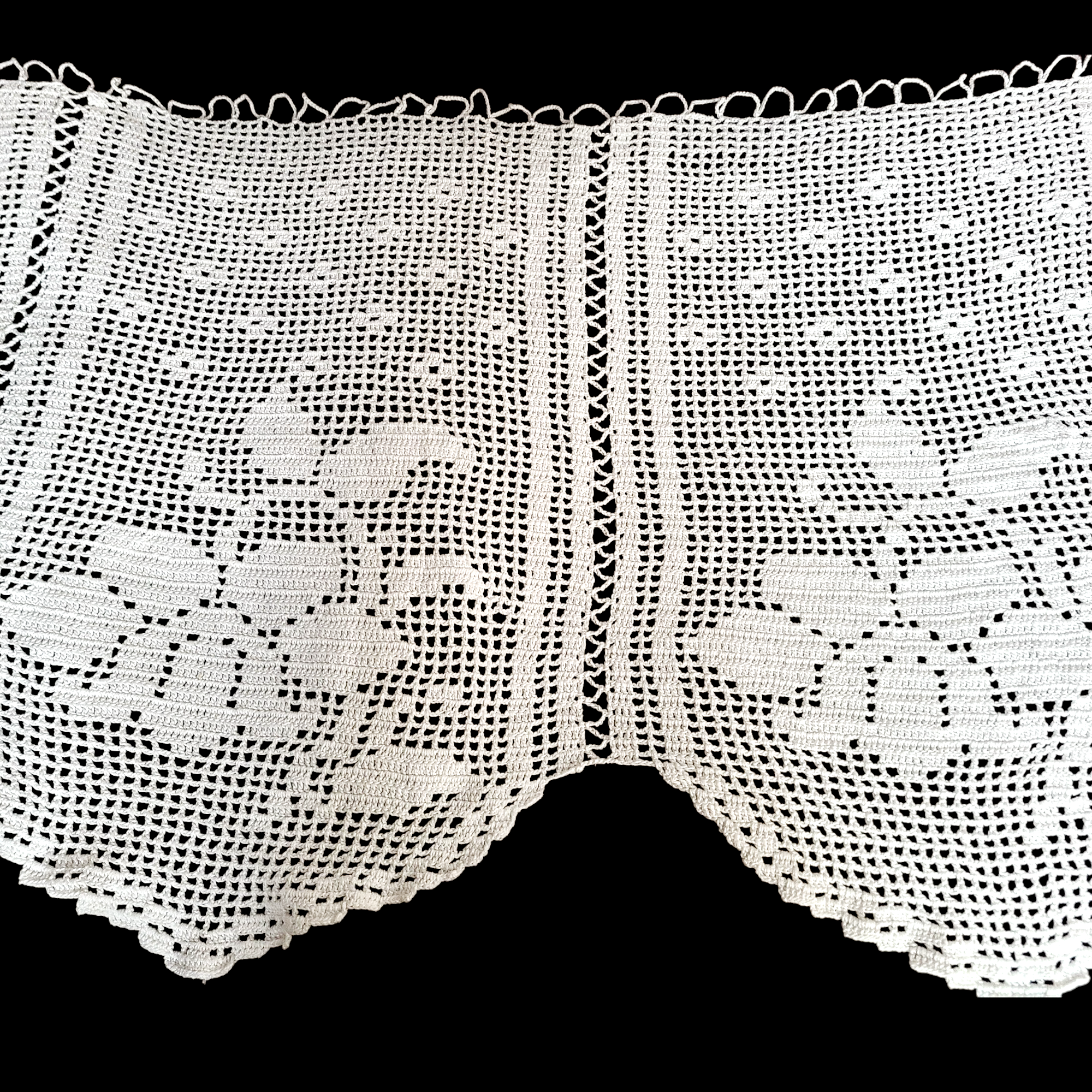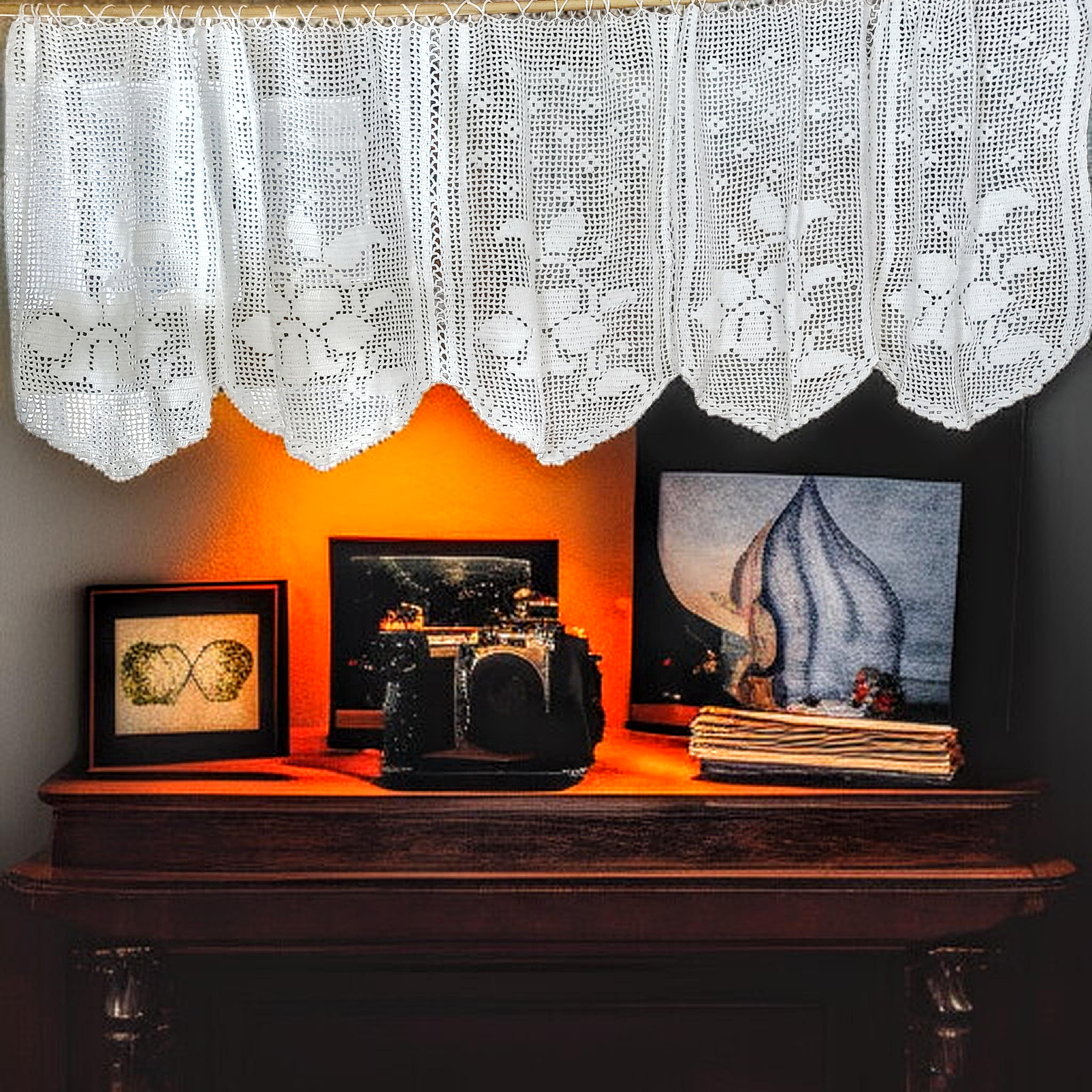 Õrn heegeldatud pitskardin lillemustriga on loodud hetkedele, mil valgus muutub kuldseks, justkui sosistaksid möödunud ajad aknaklaasi taga. See romantiline vintage stiilis aknakardin lisab tuppa pehmust ja ajatut ilu.