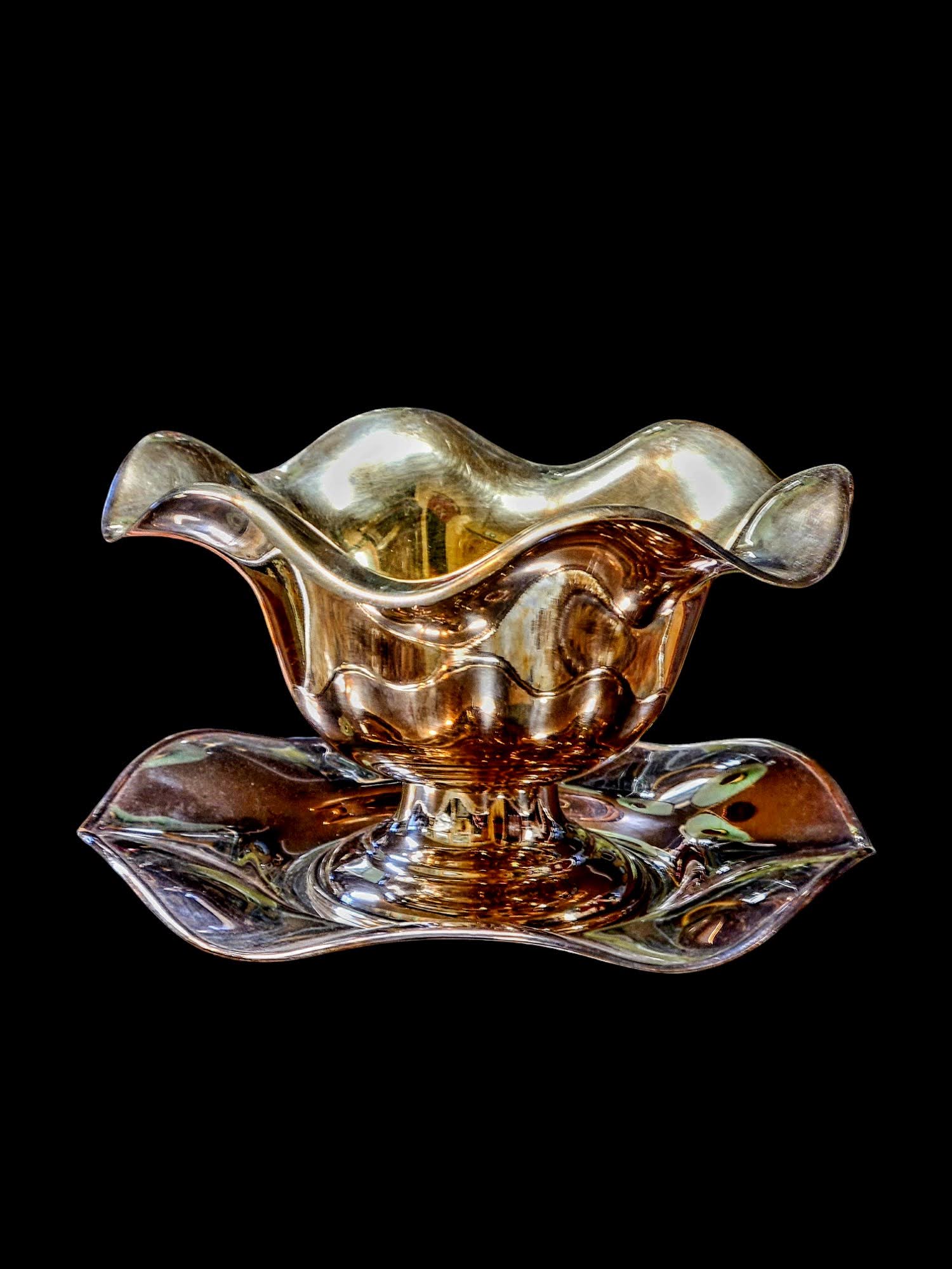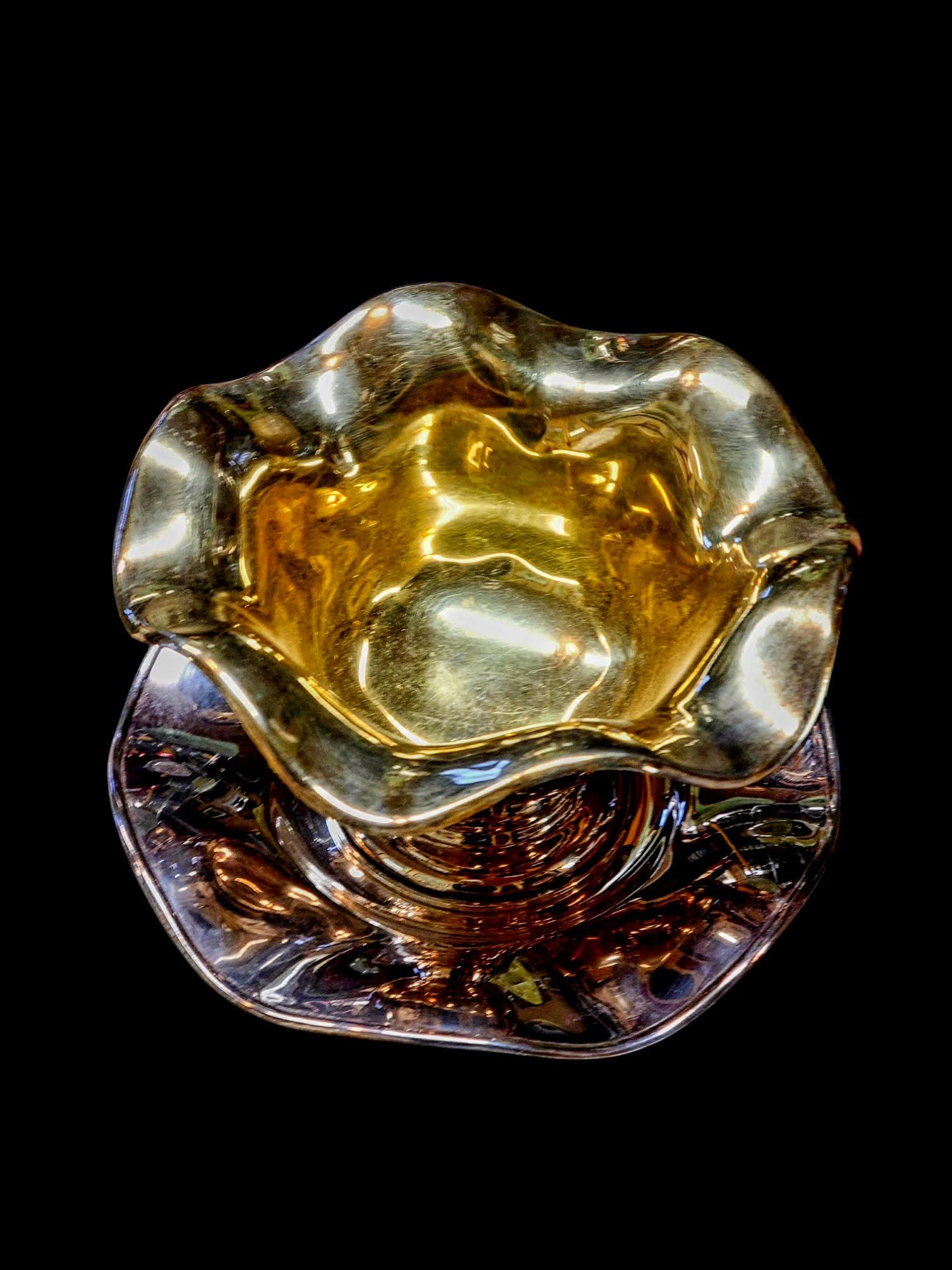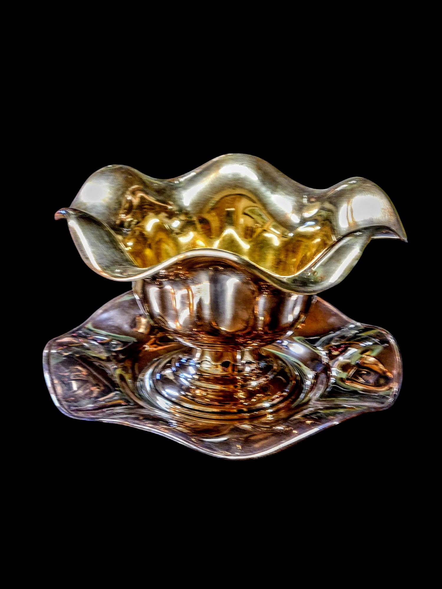Lisa oma lauale ajatut ilu ja peent stiili kauni hõbetatud serveerimisnõuga. Lainelise servaga disain, sooja kuldse viimistlusega sisepind ja särav patina muudavad serveerimisnõu erakordseks detailiks igal laual. Stabiilne alus tagab mugava kasutamise, olgu see kastmete, puuviljade, maiustuste või magustoitude serveerimiseks.