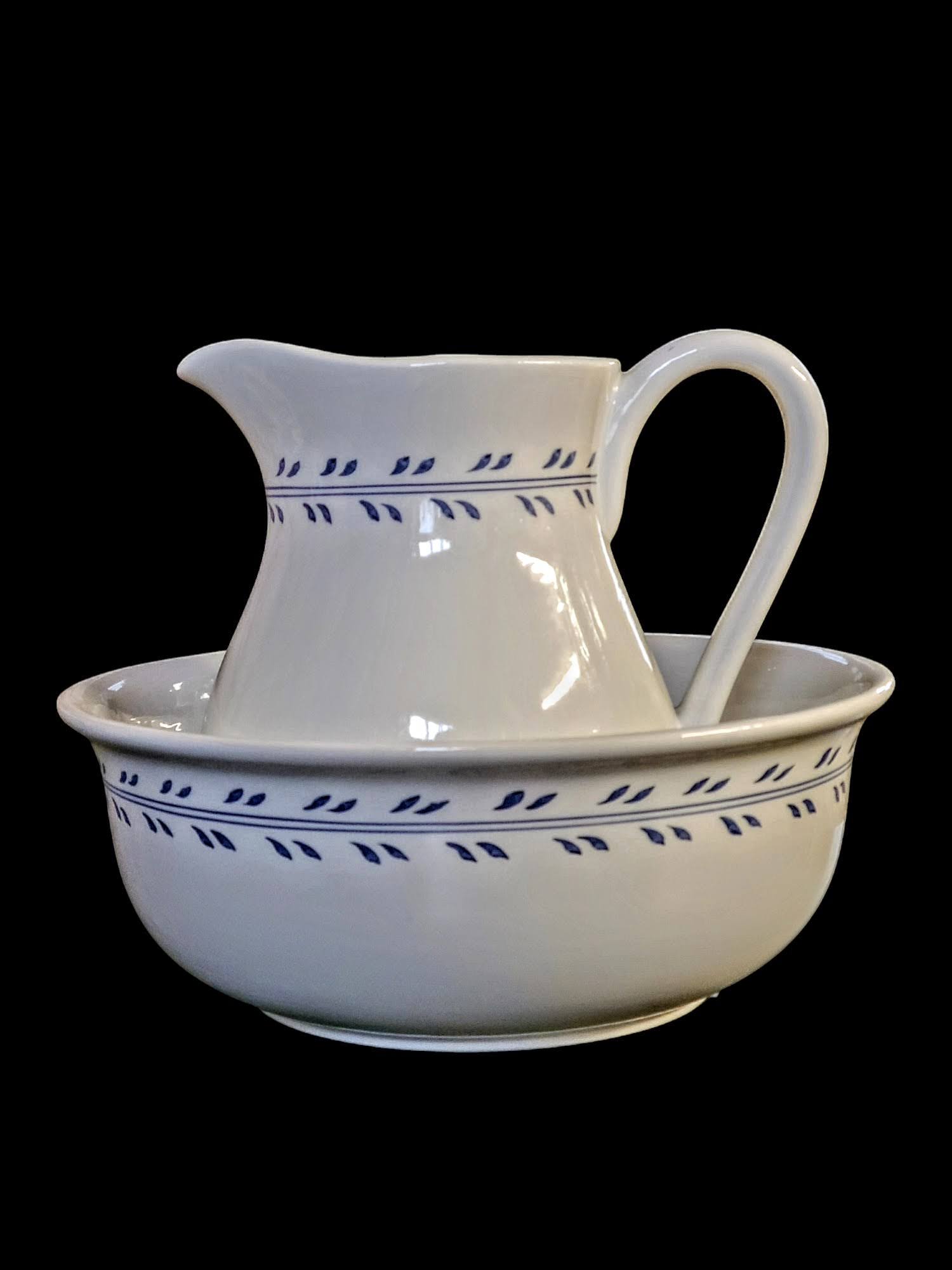 Armas ja klassikalise disainiga kaheosaline keraamiline kambripesukomplekt. Komplektis suurepärase kujuga kann ja sobivas mõõdus pesukauss.