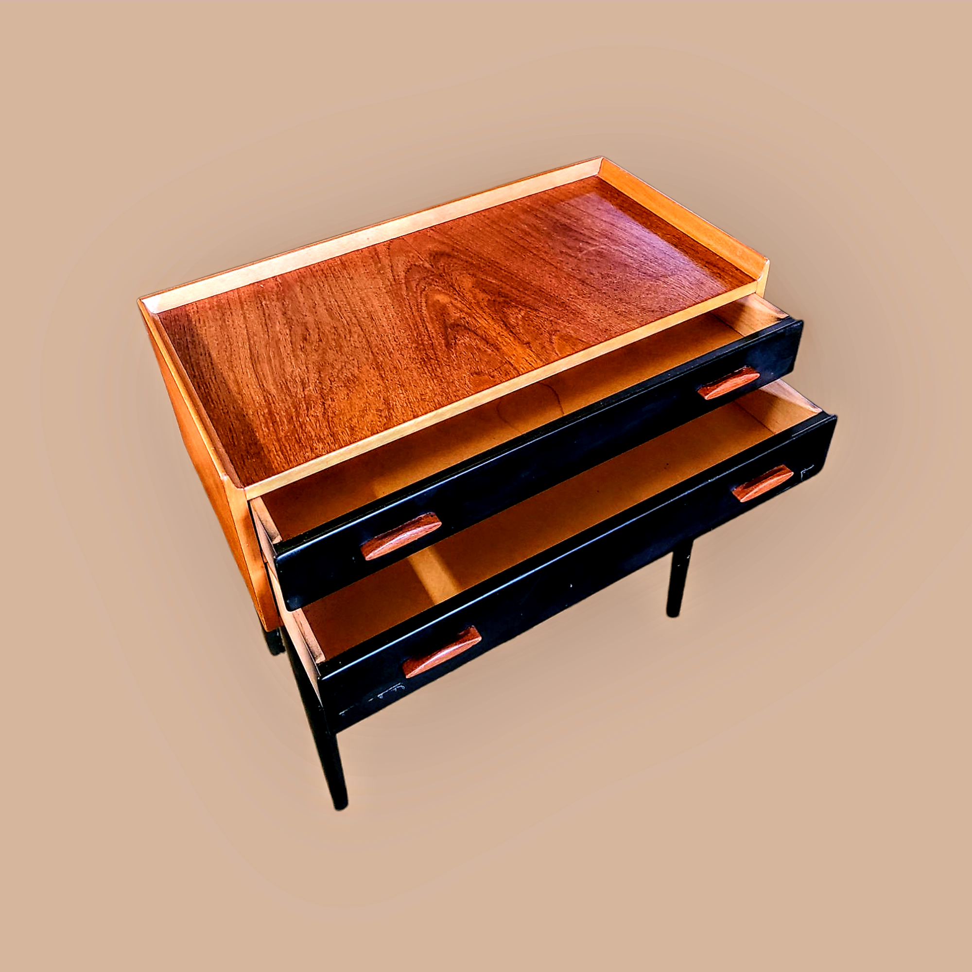 Aeg liigub edasi, end mõned esemed kannavad endas ilu ja ajatult head maitset. 1953. aastal Rootsis valmistatud „Treman“ kapp on ehe näide põhjamaise disaini kuldajastust. Kapi puhtad jooned, roosipuu spoonist korpus, elegantsed musta lakiga sahtlid ja jalad loovad unikaalse koosluse, milles peitub 1950ndate modernismi vaim.