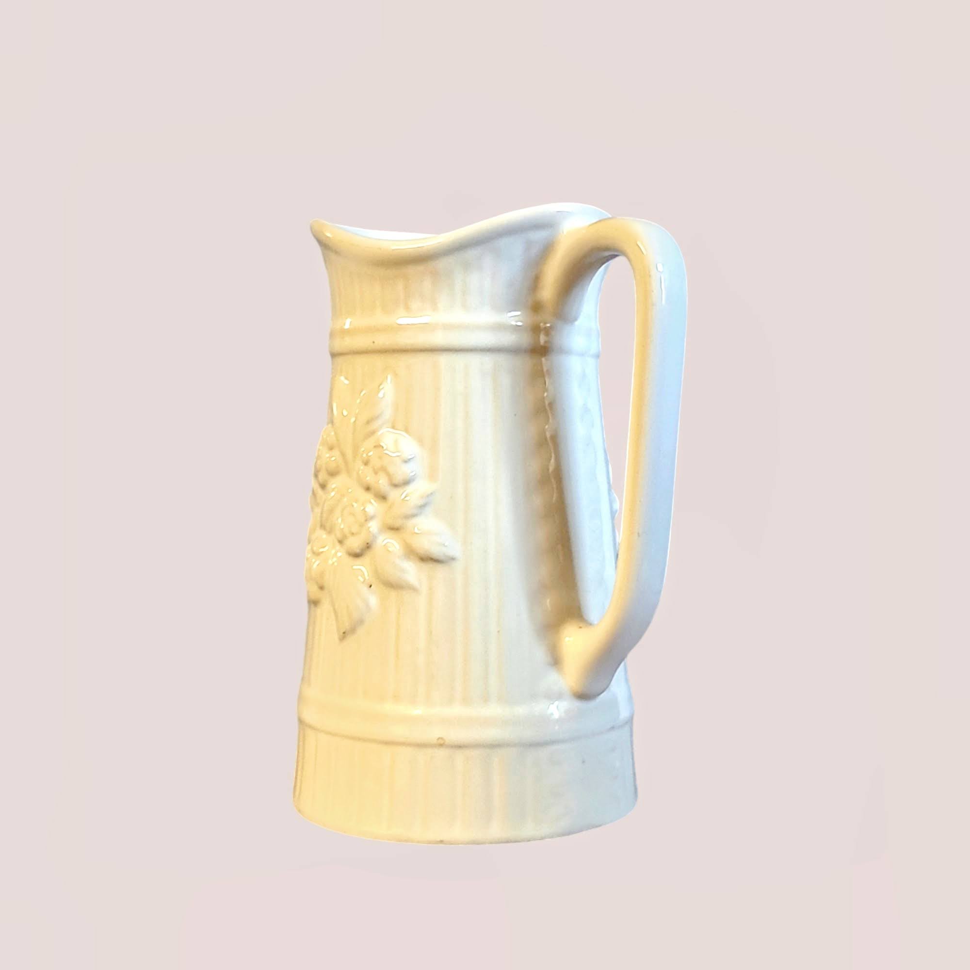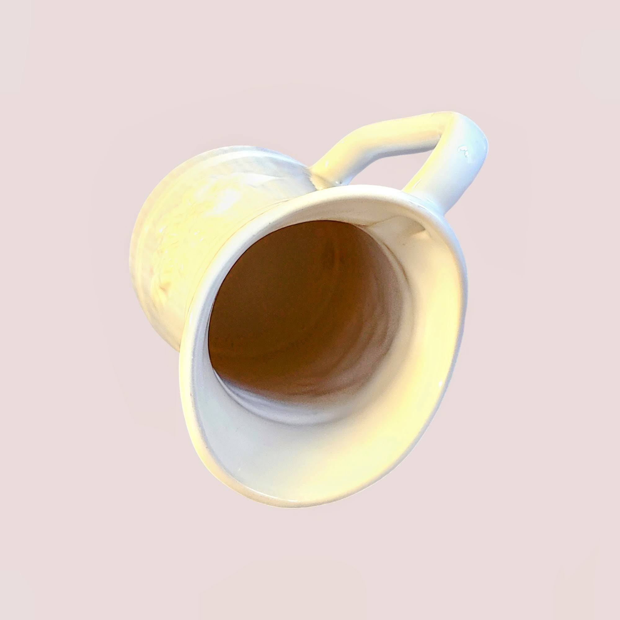 Valge keraamiline kann on pärit 1970. aastatest, Guldkroken HJO tuntud keraamikatootjalt.