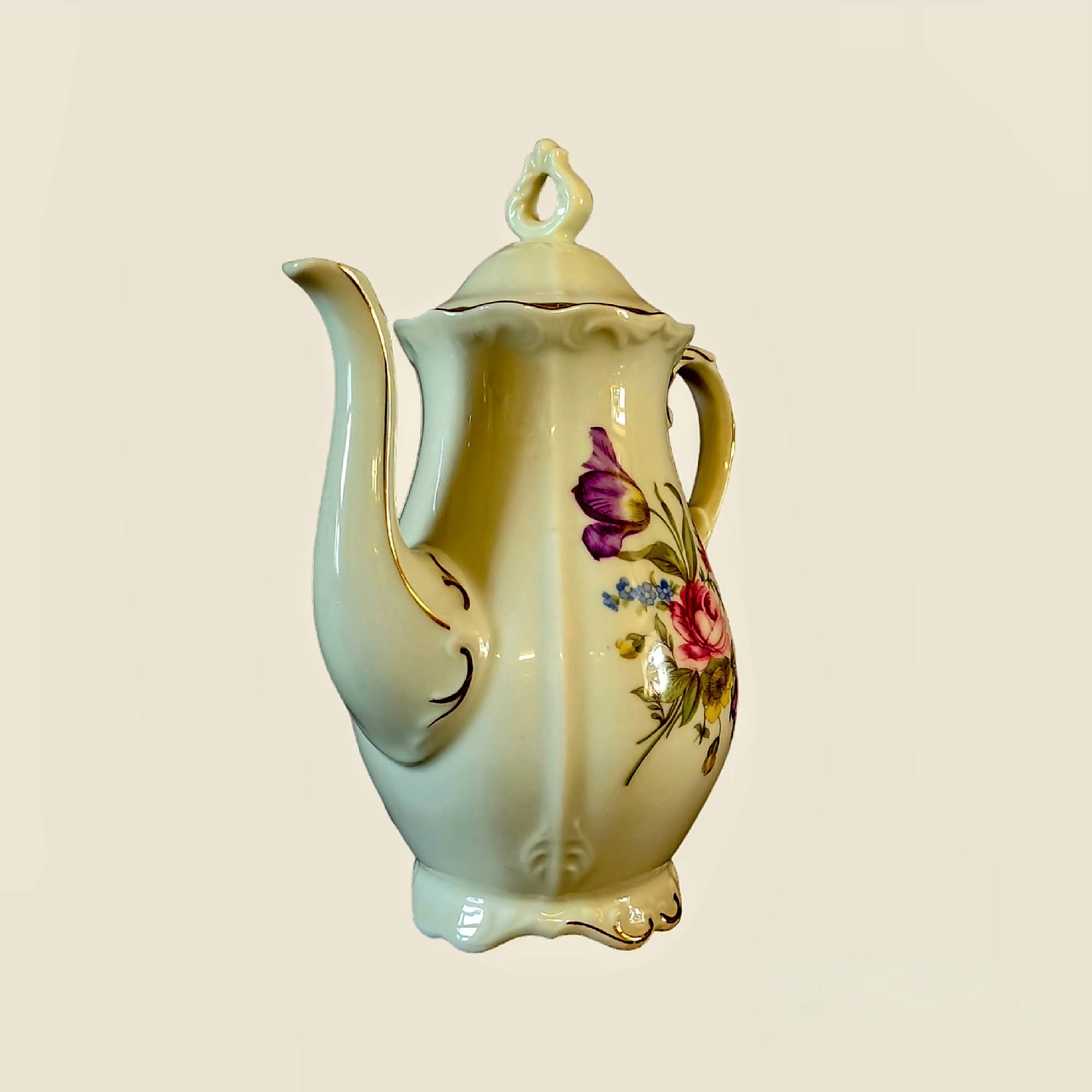 Ajatu ilu võrratu elevandiluu tooni kohvikannuga, kaunistatud armastatud Meisseni kimbu dekooriga sära lisavad kaunid reljeefid kuldse ääristusega. Pilkupüüdev kohvikann lisab lauale võluva elegantsi.