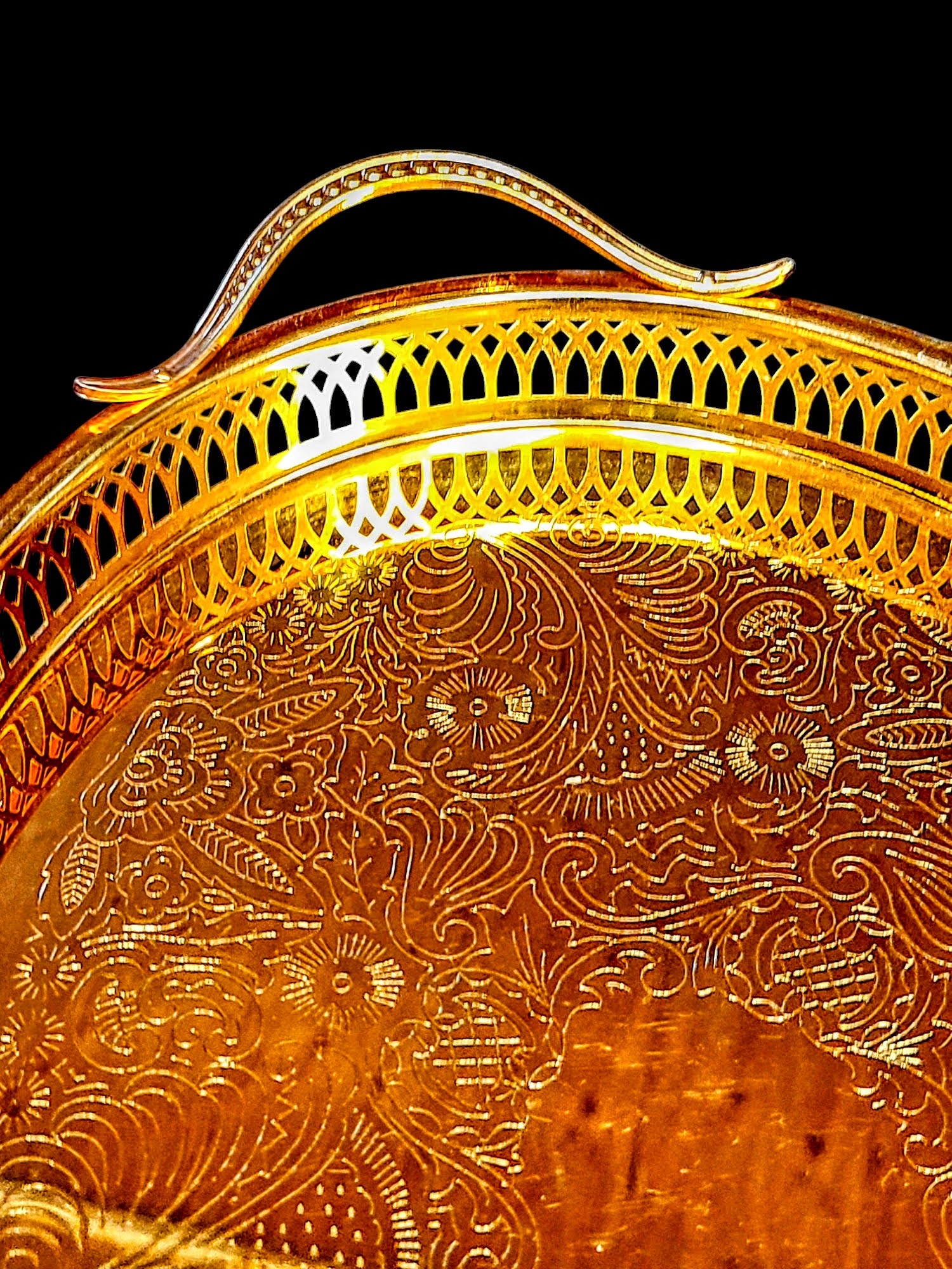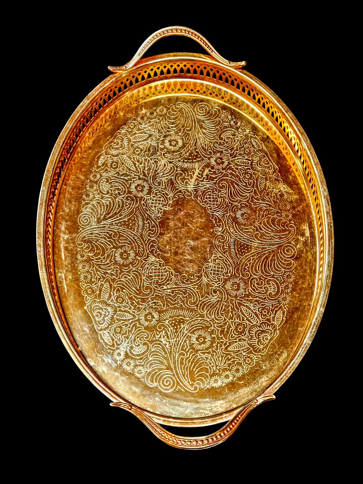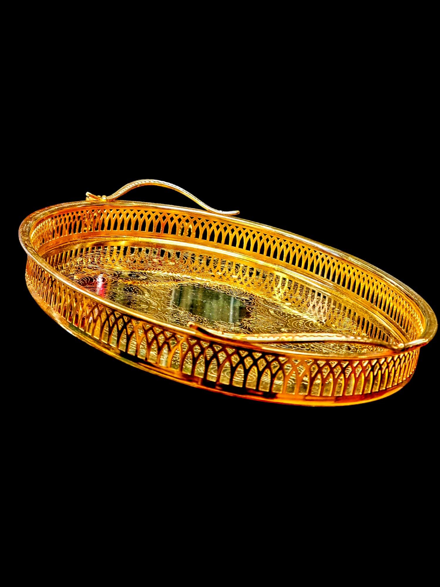 Lisa oma peolaua sära kauni kullatud ovaalse serveerimiskandikuga. Peenelt graveeritud detailid, lisavad kandikule silmapaistva ilme. Õhulise mustriga servad ja voolujoonelised käepidemed muudavad kandiku praktiliseks kui ka pilkupüüdvaks sisustuselemendiks.