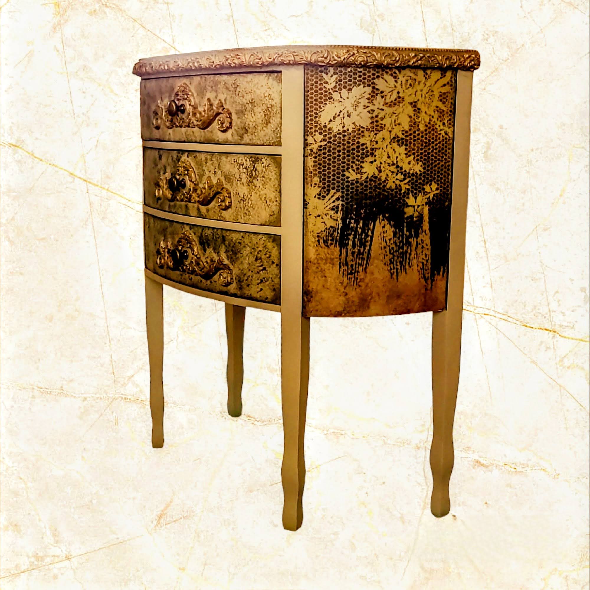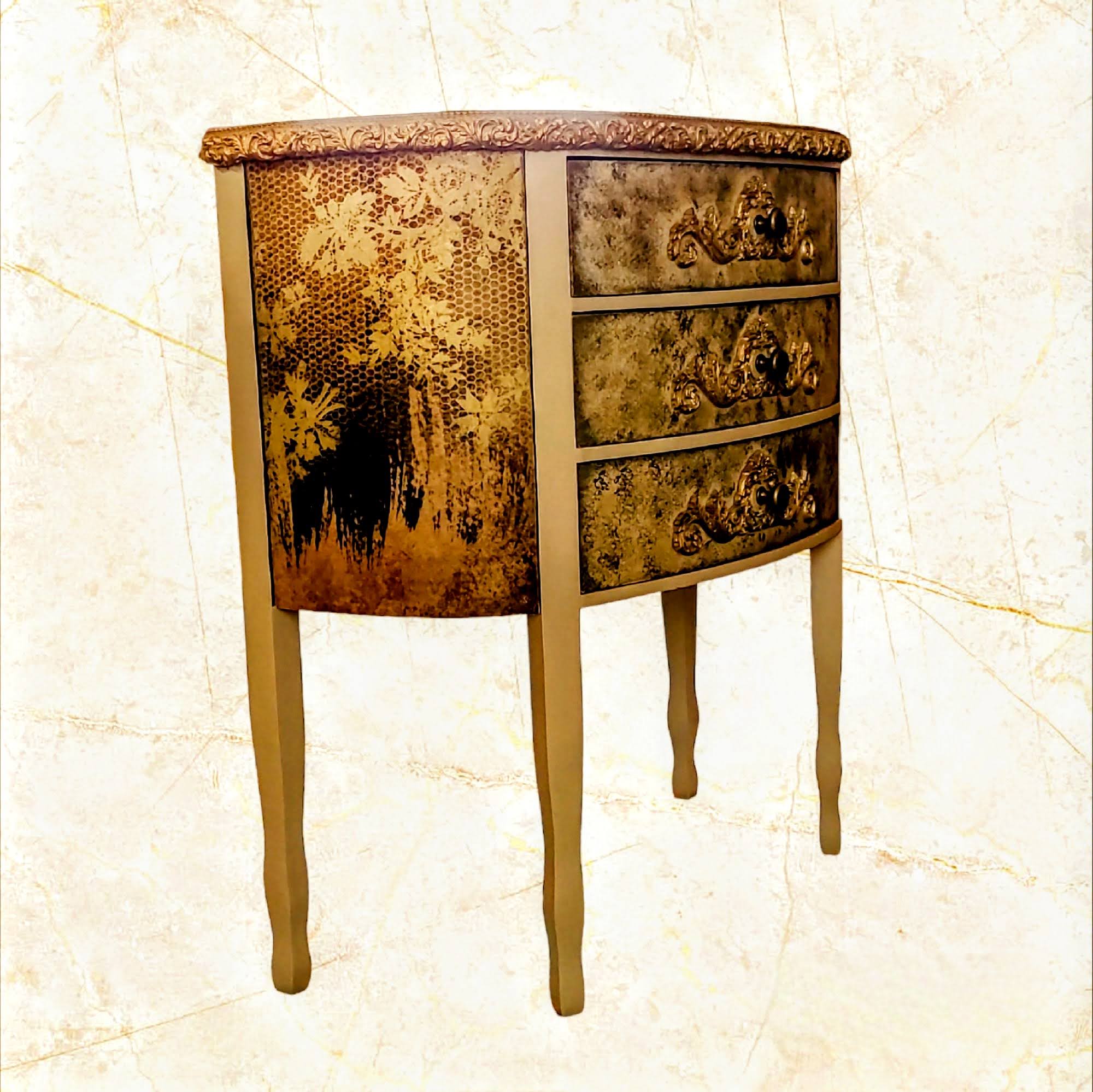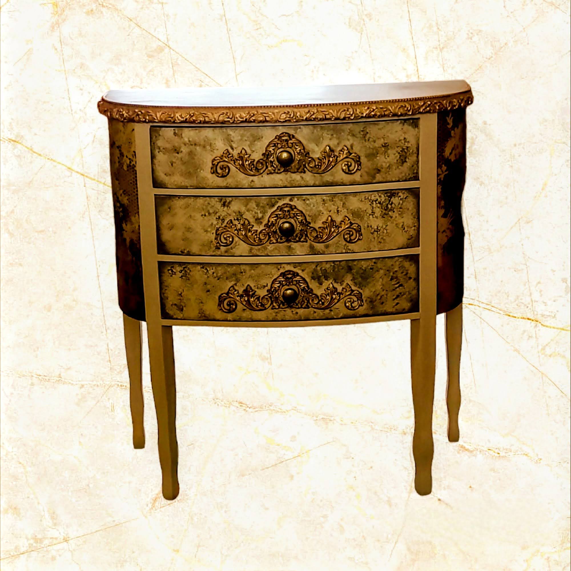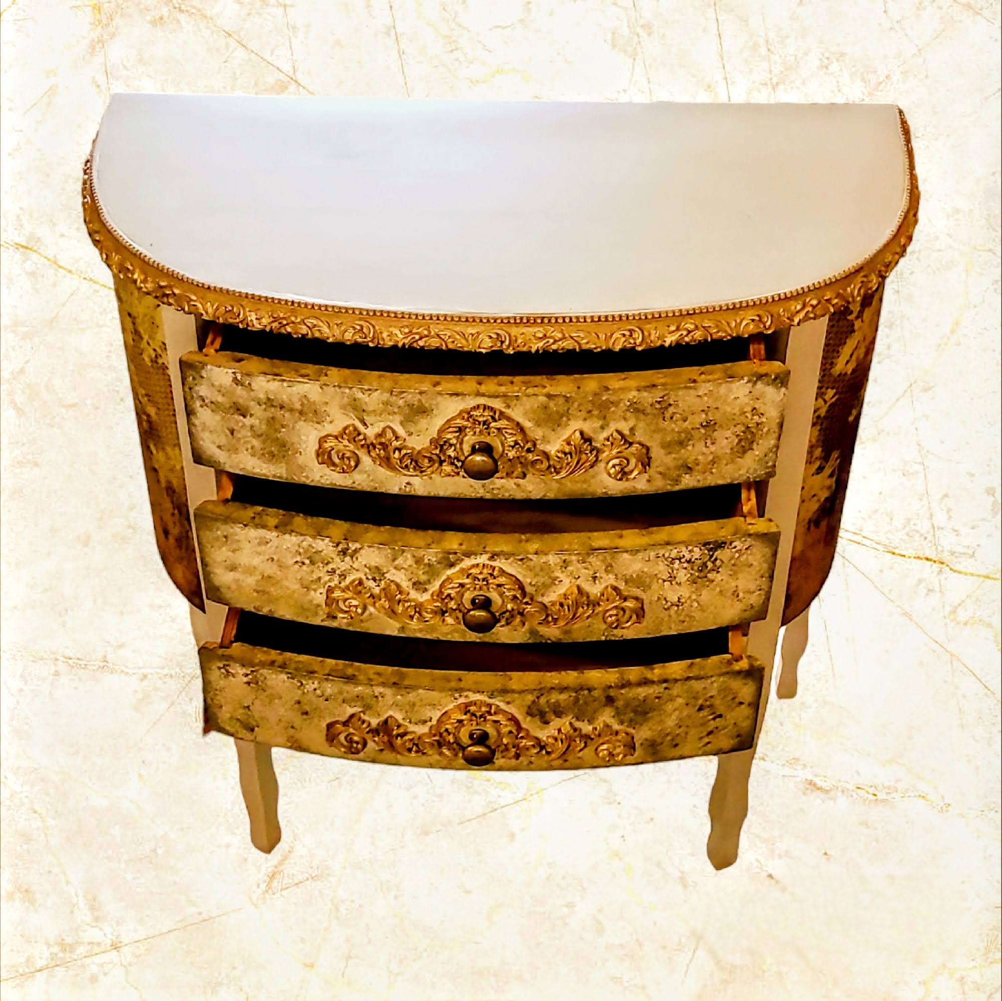Kummuti pind on viimistletud sooja elevandiluu tooniga, mis lisab ruumile helgust ja avarust. Rikkalikud detailid ja peened ornamendi toovad esile Itaalia stiilile omase luksuslikkuse. Kummuti õrnad jooned loovad romantilise atmosfääri.