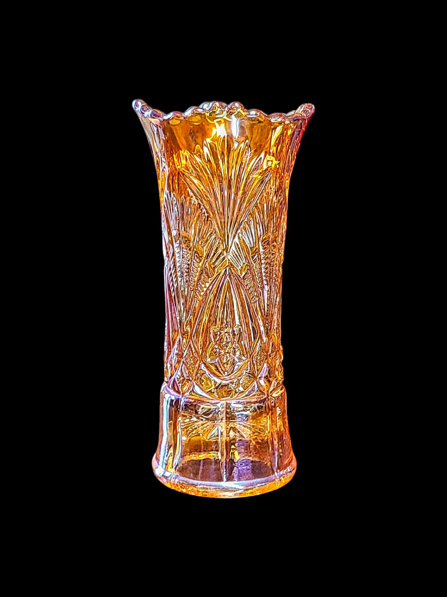 Vaasi rikkalik ja sädelev lüsterklaas, loob valguse käes kuldse lummava sära.
