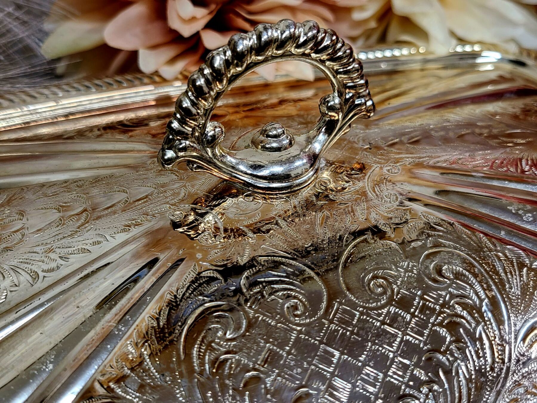 Inglismaal valmistatud nõu ühendab endas rikkalikult graveeritud hõbetatud raami ja kuumakindla klaasist vormi, mis hoiab toidu soojana ning esitluse laitmatuna. Kaas peegeldab küünlavalgust ja õhtust suminat, justkui sosistades lugusid varasematest aegadest.