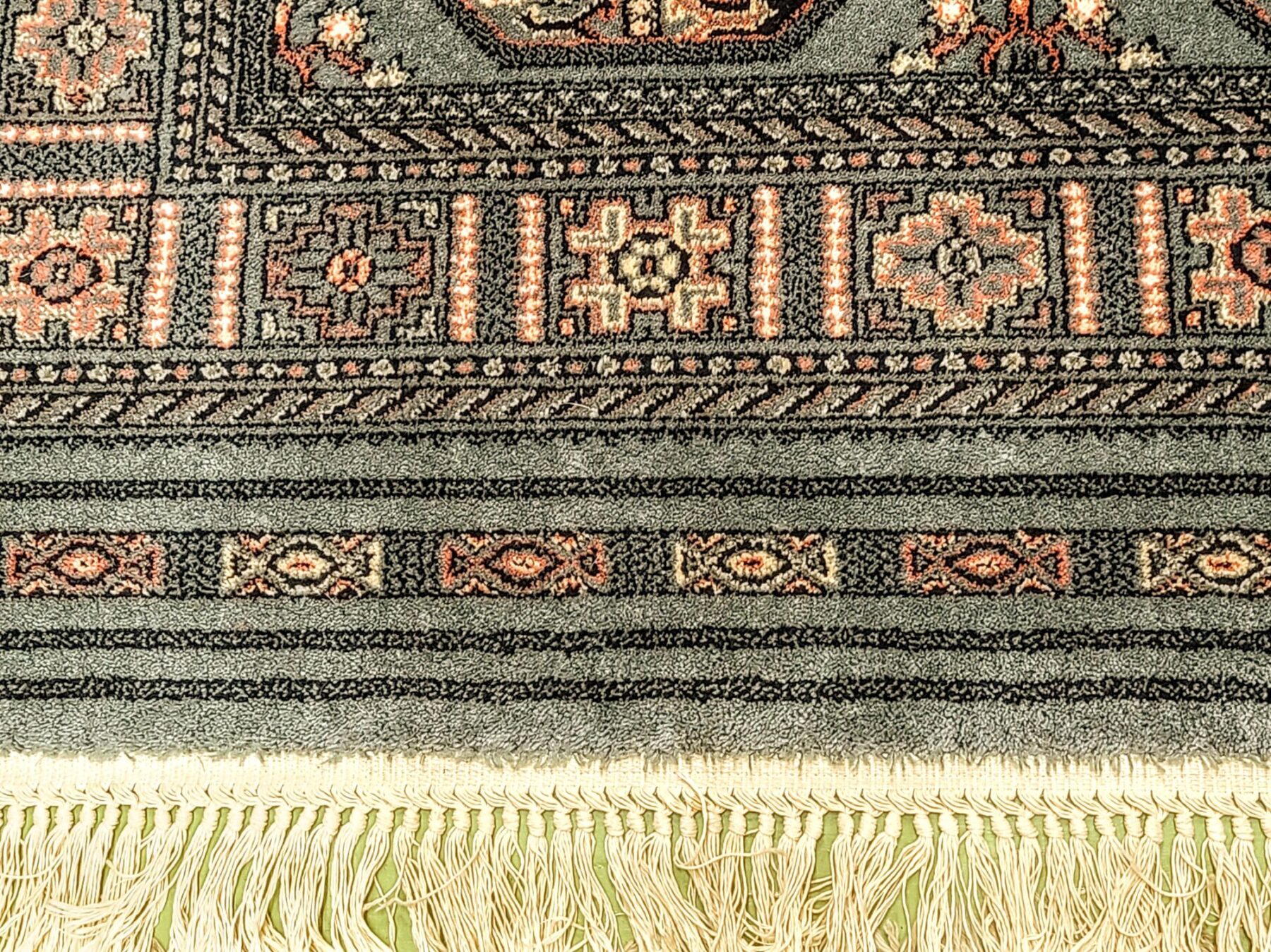 Soojad toonid ja tumedad detailid mängivad vaikselt merekarva vaiba põhjal, tuues esile mustri sügavuse ja käsitöö hingamise. Narmad on korrektsed ja klassikalised, justkui vaikne kummardus vanale vaibatraditsioonile.