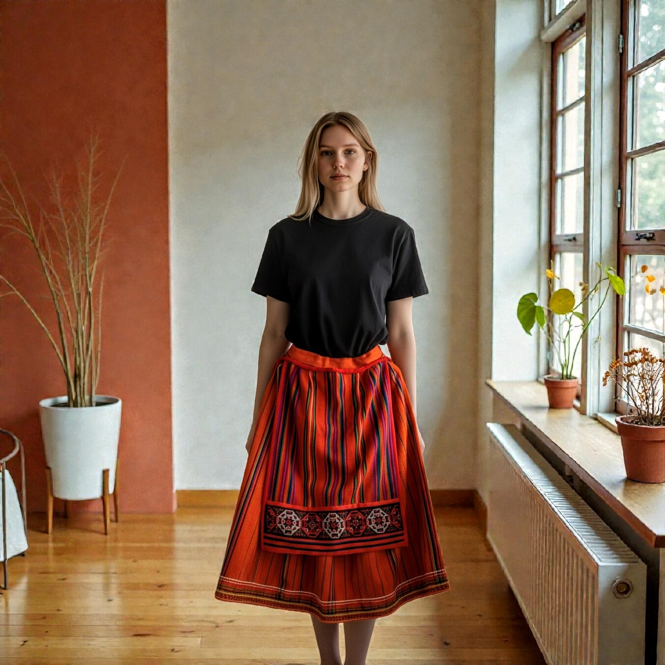 Põll on heas korras, hoolitsetud ja väärikas, valmis kandma edasi oma lugu. Uhke põll ei ole lihtsalt rõivaese, vaid osa Muhu naise maailmast – kombekas ja rõõmsavärviline. Seotuna vööle langeb ta kaunilt, hoides endas nii pidulikkust kui kodusoojust.