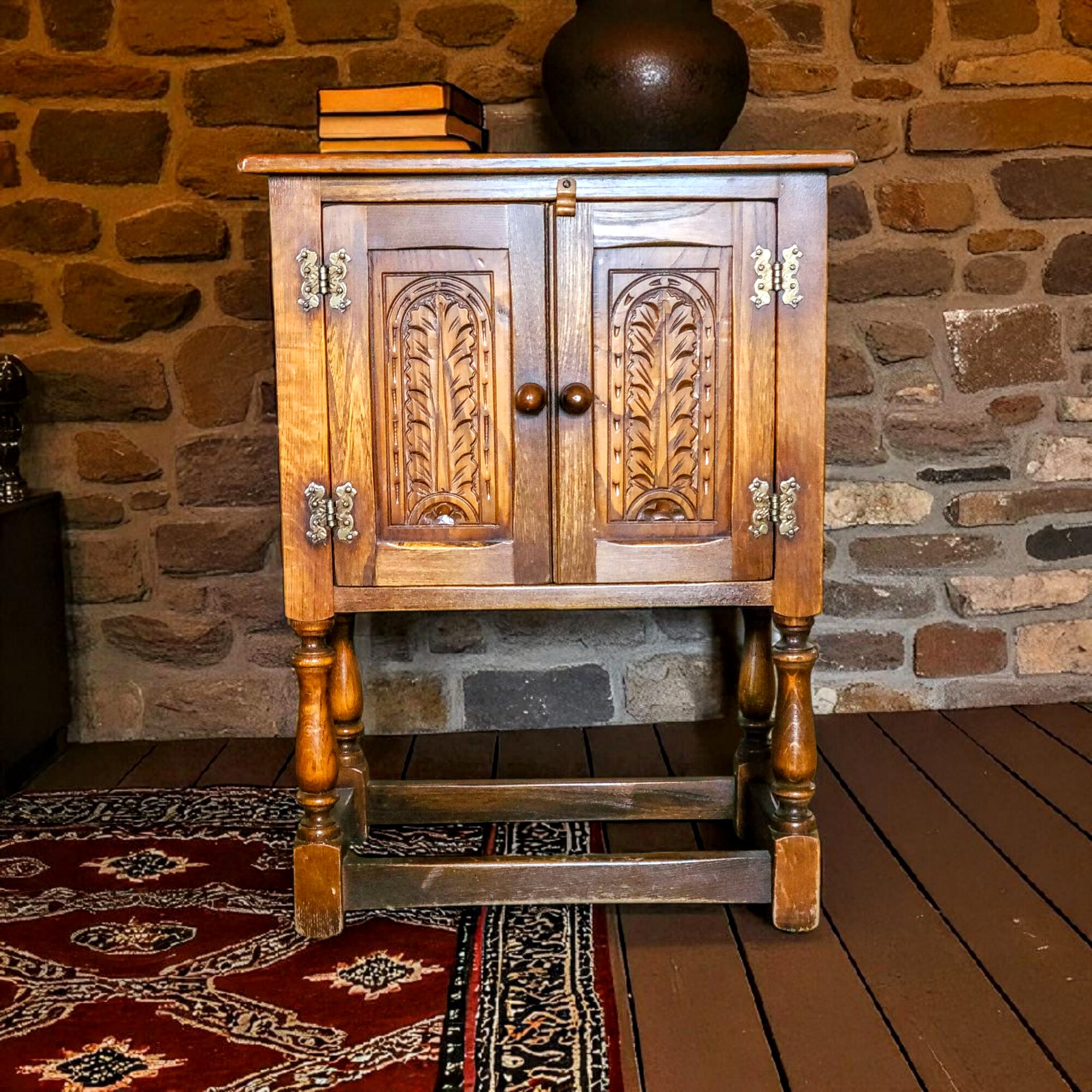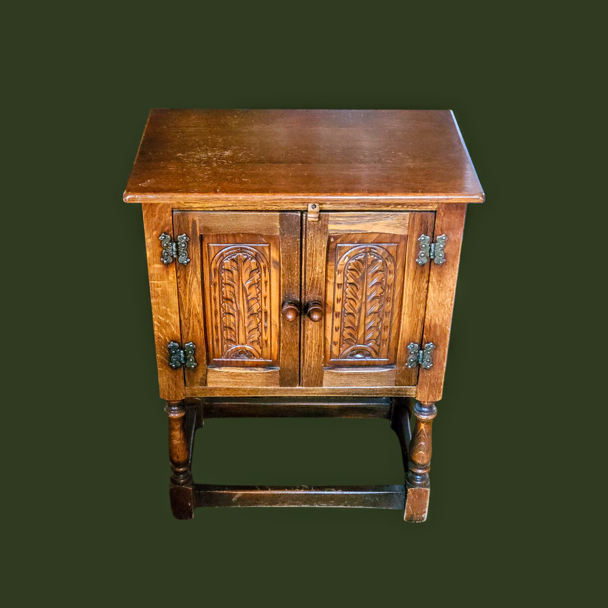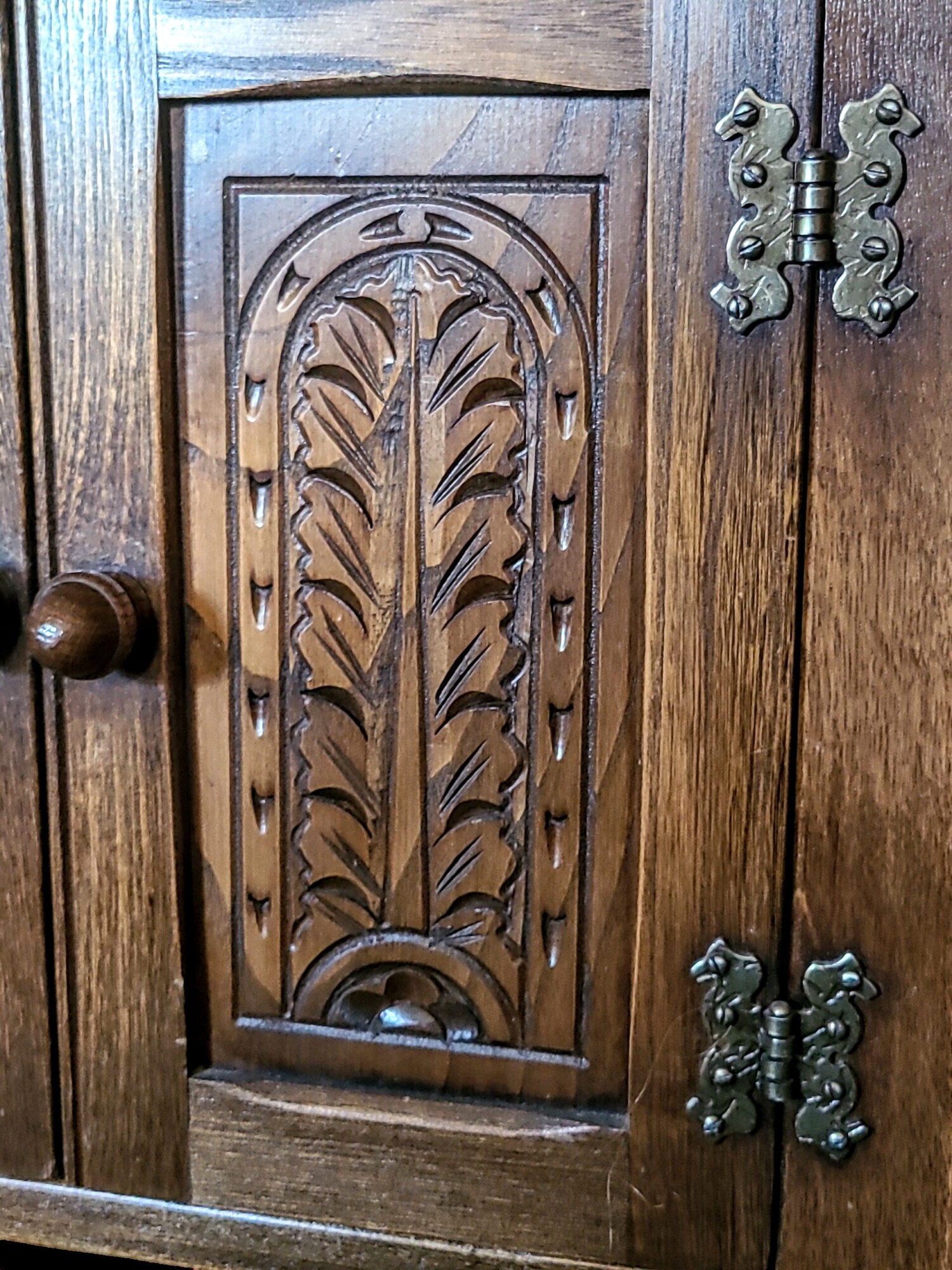 Nikerdatud ustega tammepuidust kapp on kui vana maja süda: soe, tugev ja saladusi täis. Iga nikerdus räägib käsitöölisest, kes lõikas puusse ilu, iga metallhing helgib ajahõbedaselt nagu mälestus päevadest, mil telefon helises vaid paar korda päevas ja vestlused kandsid endas tõelist tähelepanu.