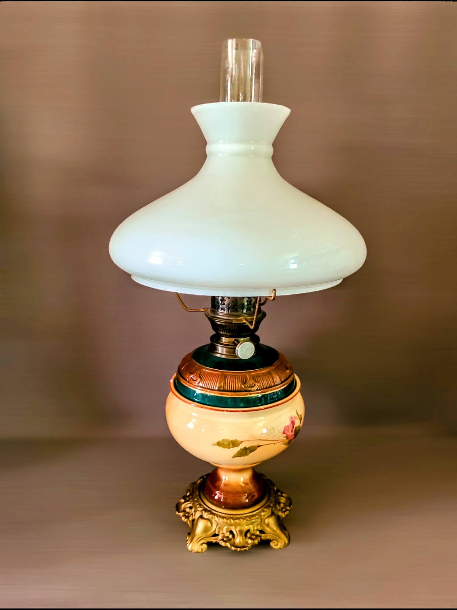 Väärikas petrooleumi/õlilamp on kui aken minevikku, viies sind ajarännakule, kus igapäevaelu valgustas petrooleumilampide soe kuma. Kujutle kuidas see lamp valgustab sinu kodu ja loob atmosfääri, mis on täis nostalgiat ja rahu.