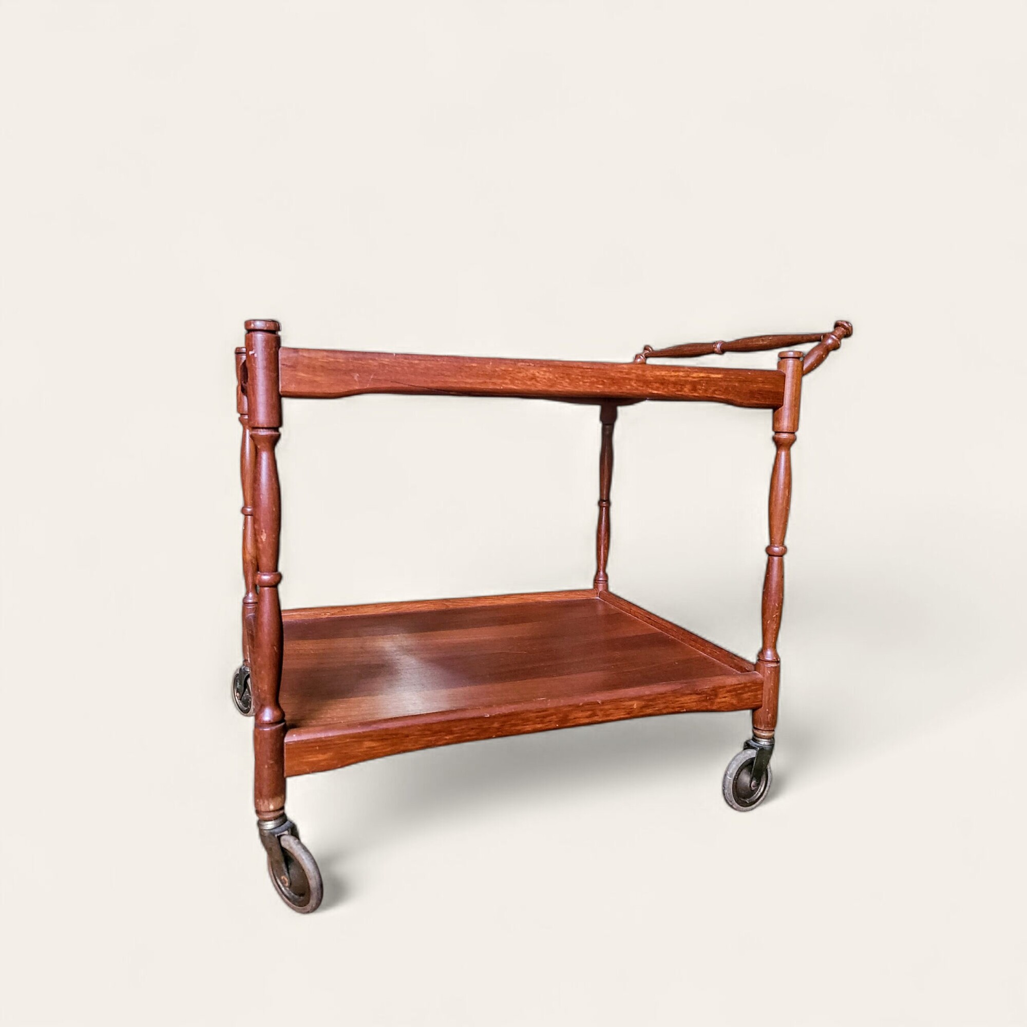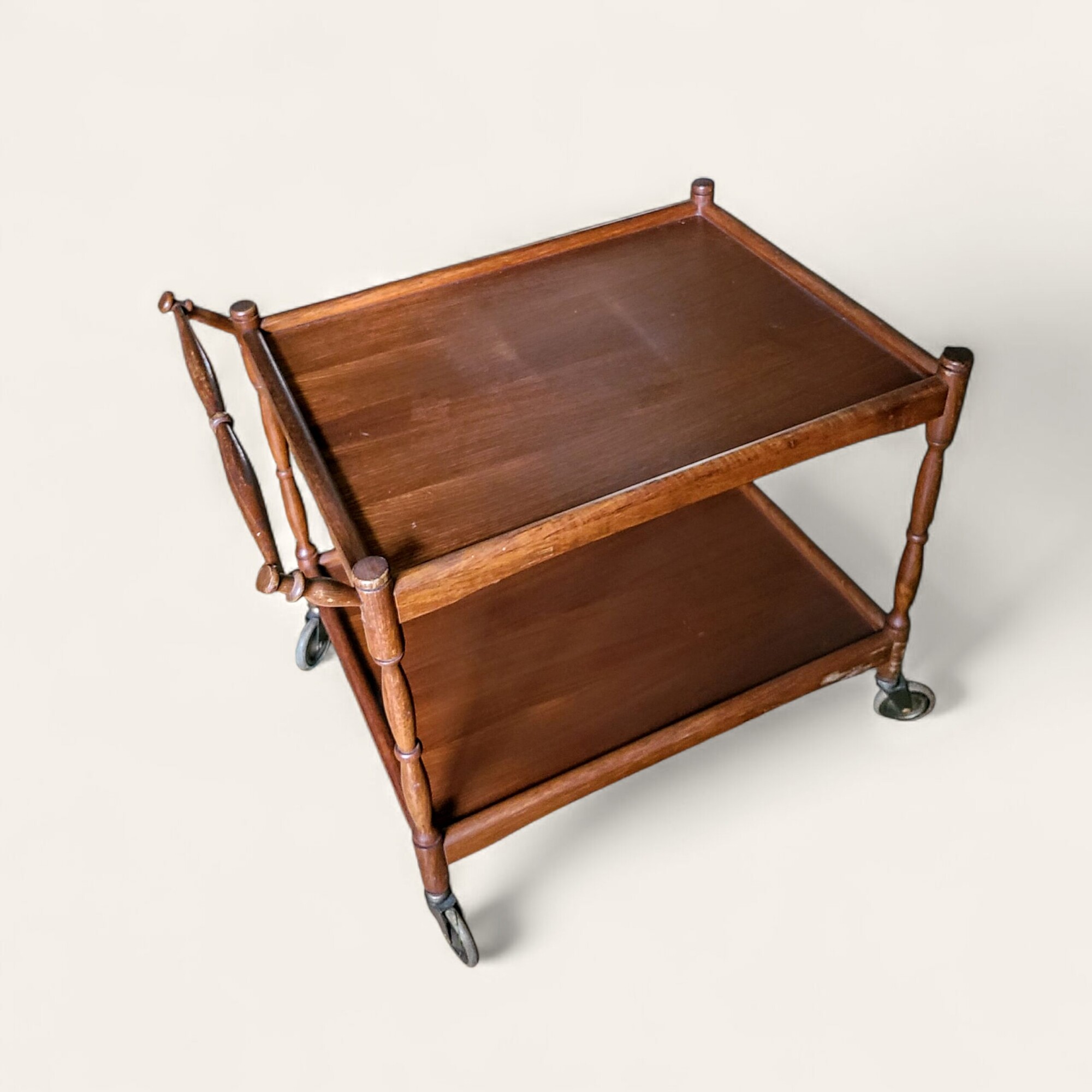 Kahe tasapinnaga puidust retro serveerimiskäru kannab endas 20. sajandi lihtsat elegantsi. Treitud käepide ja jalad ratastel alus muudavad laua praktiliseks ja ajastuhõnguliseks sisustuselemendiks.