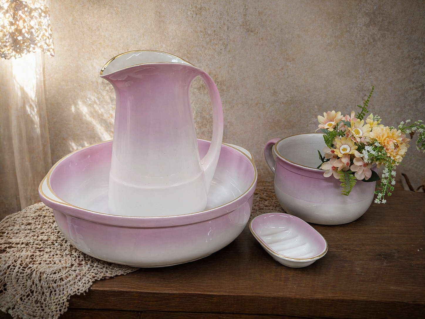 Vaoshoitud iluga kambripesu komplekt, mille kaunis vorm ja toon viivad tagasi aega, mil igapäevased toimingud kulgesid oma kindlas rütmis. Rörstrand komplekt ühendab praktilisuse ja esteetika – nagu paljud esemed ajast, mil ilu ei olnud eraldi eesmärk, vaid loomulik osa tarbeesemest.