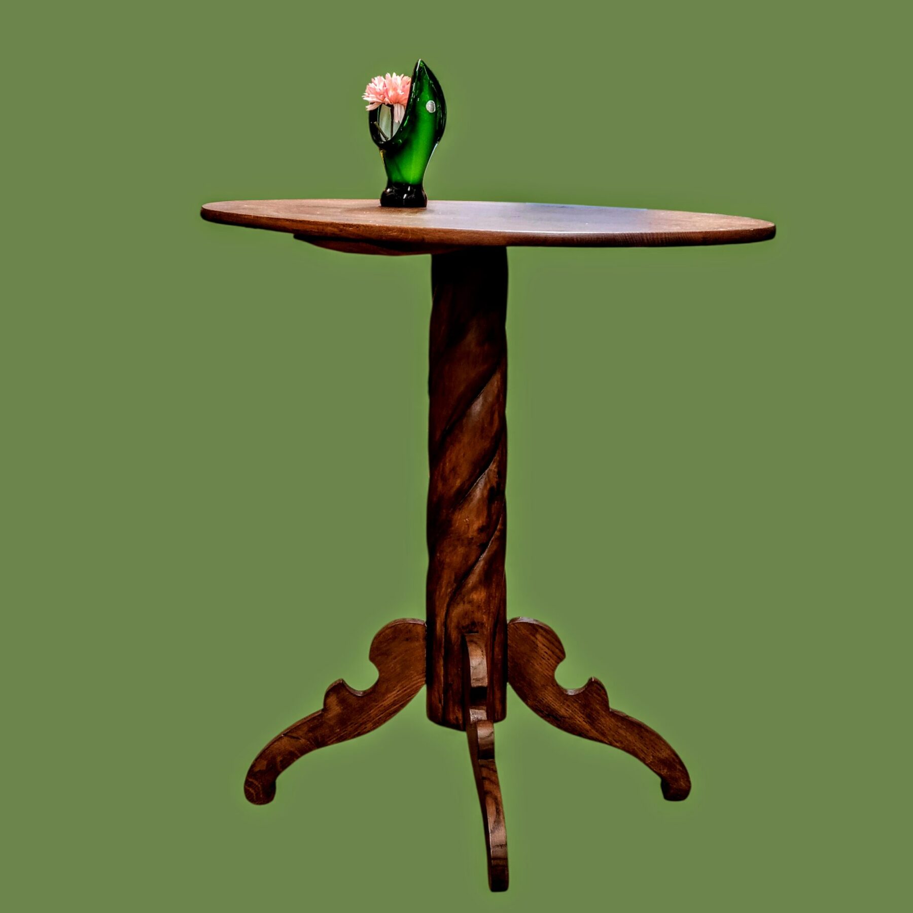 Rustikaalne ovaalne puidust abilaud mõjub tasakaalukalt – justkui loodud kestma. Lauavorm on hoolikalt läbi mõeldud, treitud keskne jalg lisab lauale kindluse kui ka elegantse joone.
