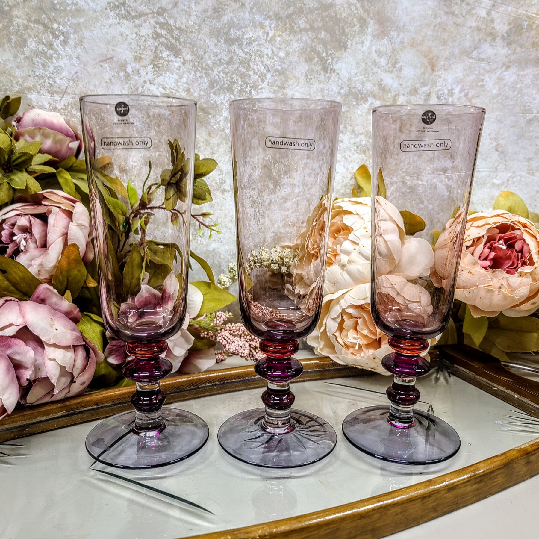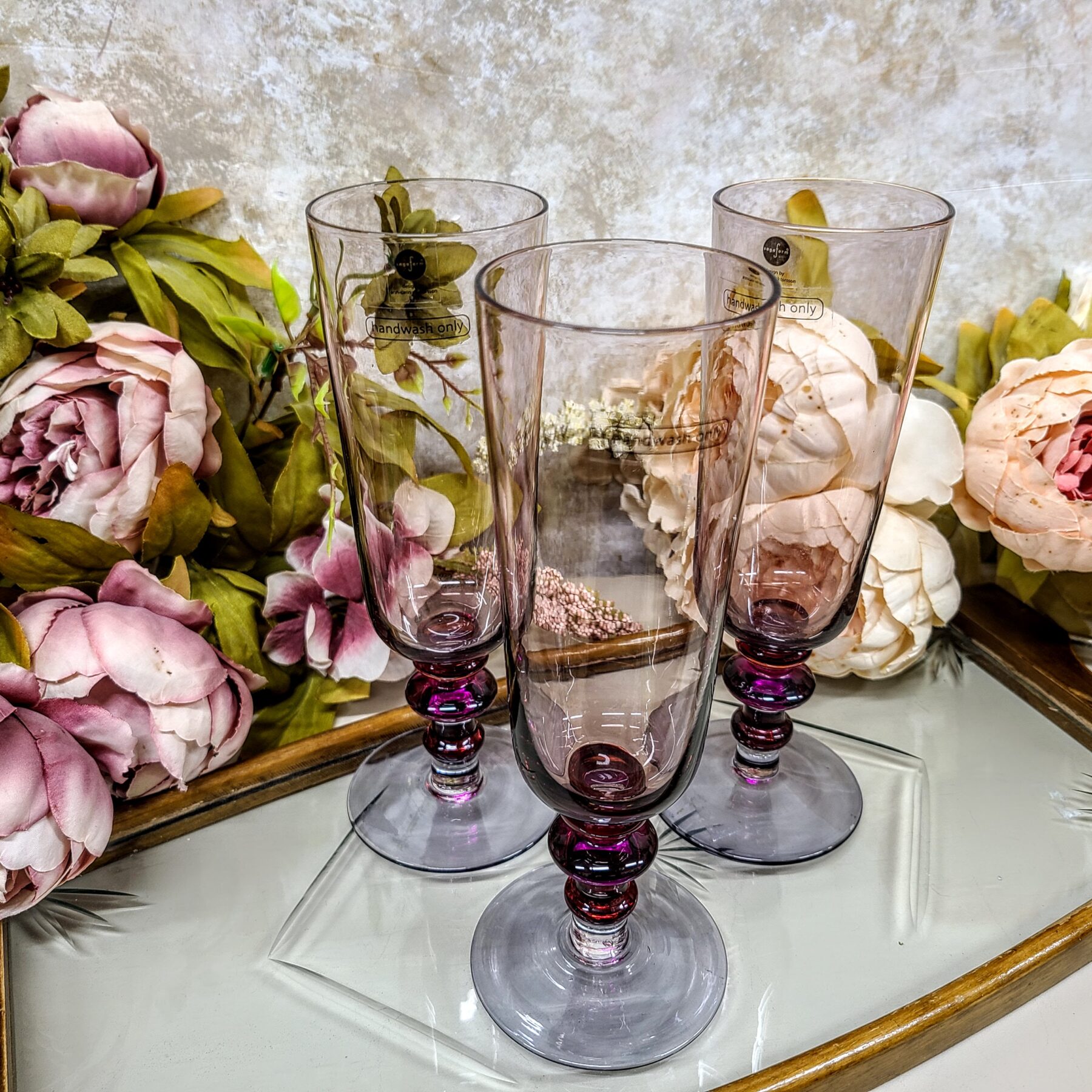 Õrnalt violetse varjundiga klaas püüab valgust tasakaalukalt, justkui õhtu, mis ei kiirusta pimedusse. Pokaali sale kuju ja tasakaalukas jalg loovad elegantse silueti, mis sobib nii pidulikule lauale kui ka romantilisteks hetkedeks.