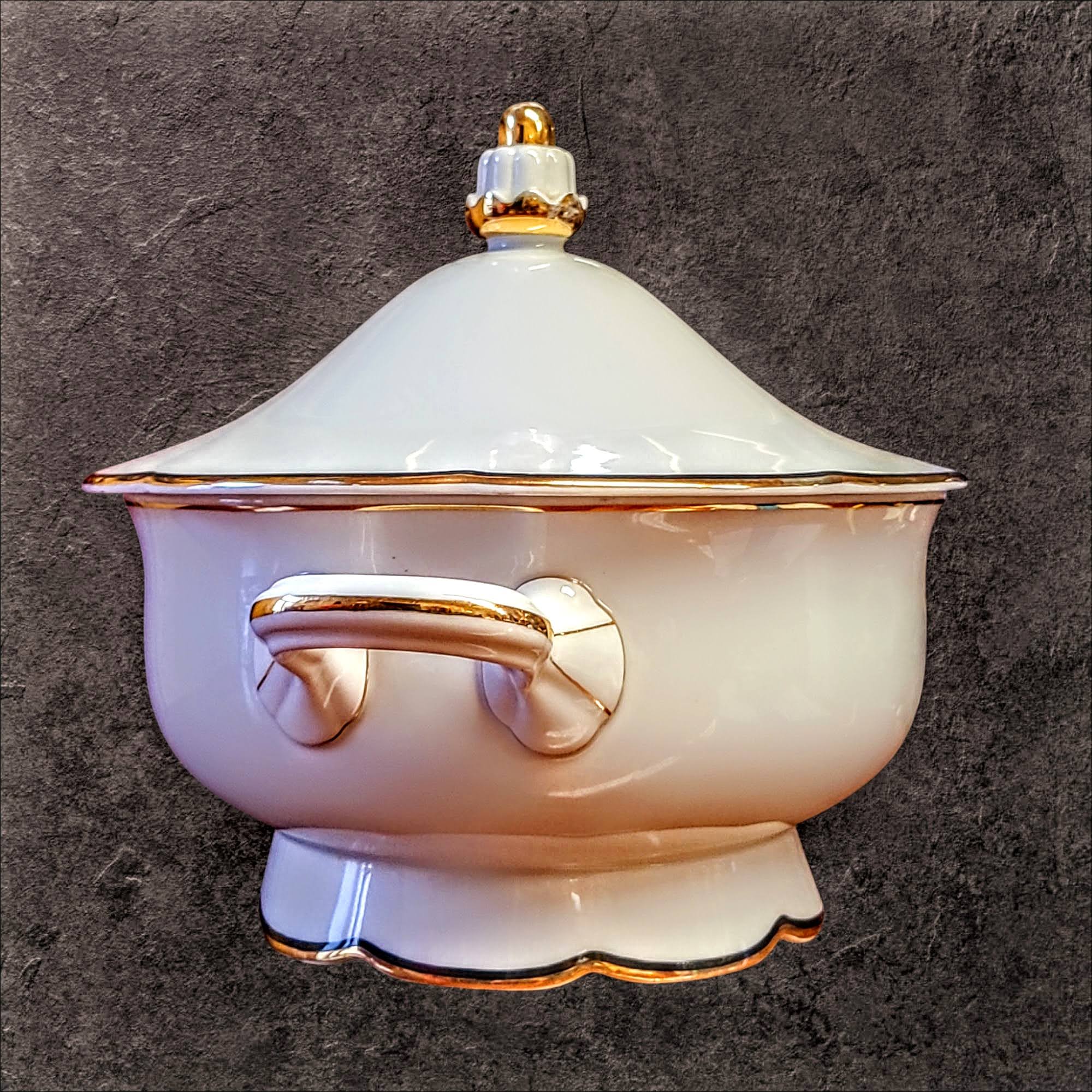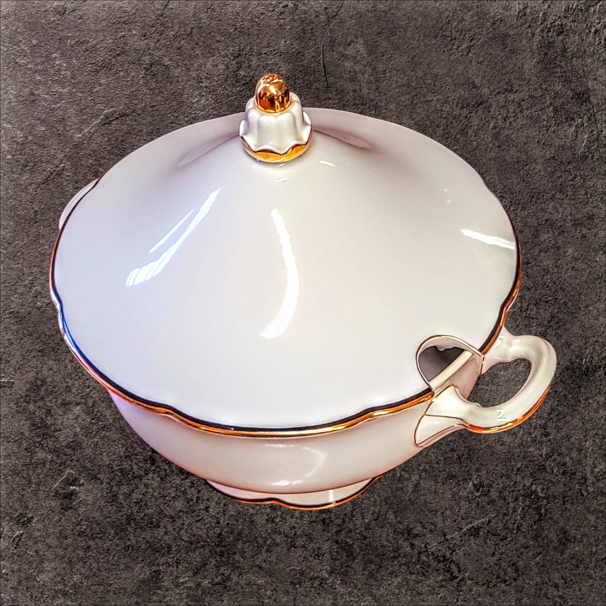 Kaunis ja väärikas portselanist supitirin. Tirina disain peegeldab ajatuid traditsioone ja meisterlikku käsitööd. Esinduslik serveerimisnõu on kaunistatud peene mustjassinise ääristusega, mida täiendavad luksuslikud kuldsed aktsendid, lisades pilkupüüdva ja rafineeritud ilme.