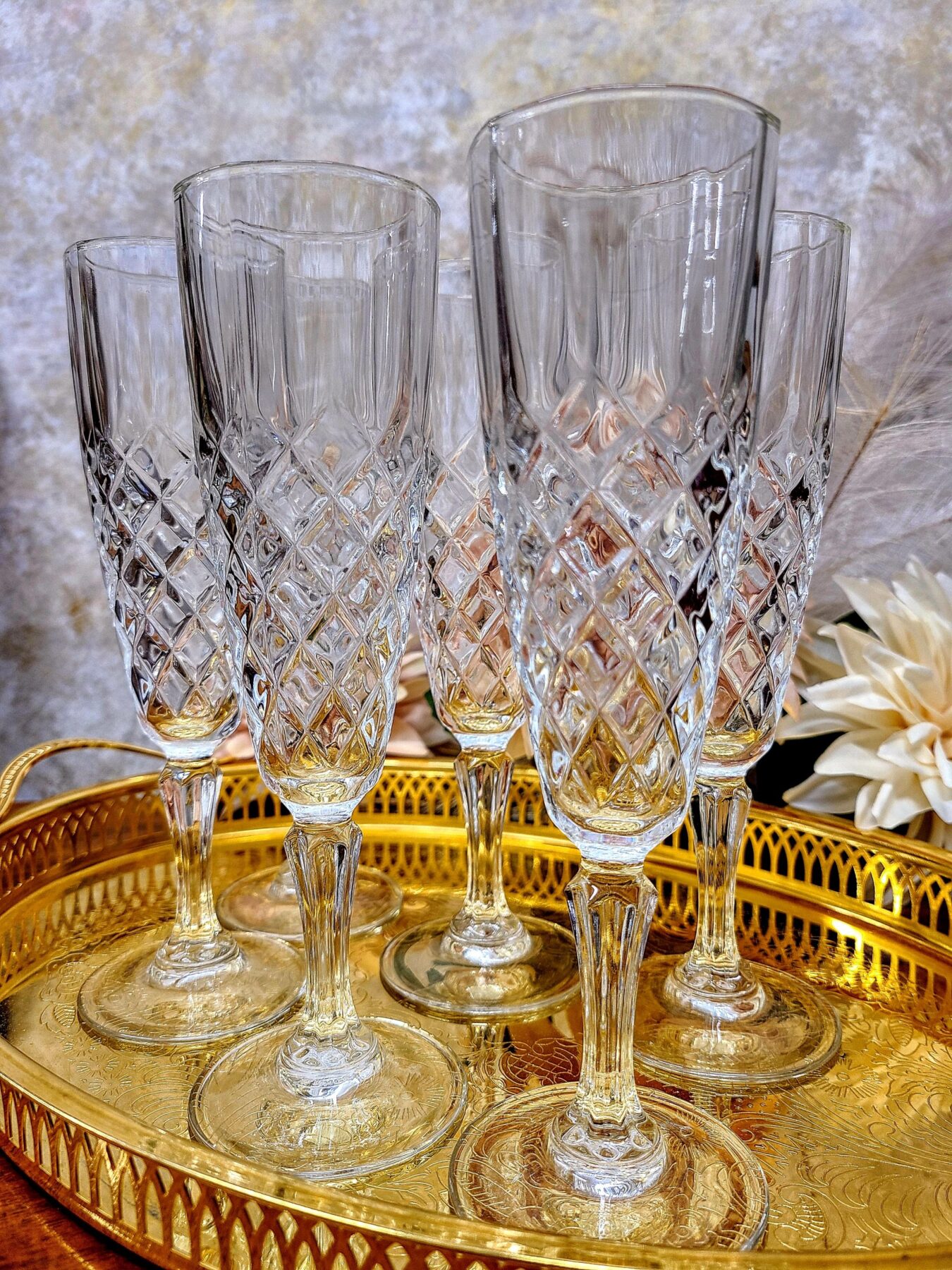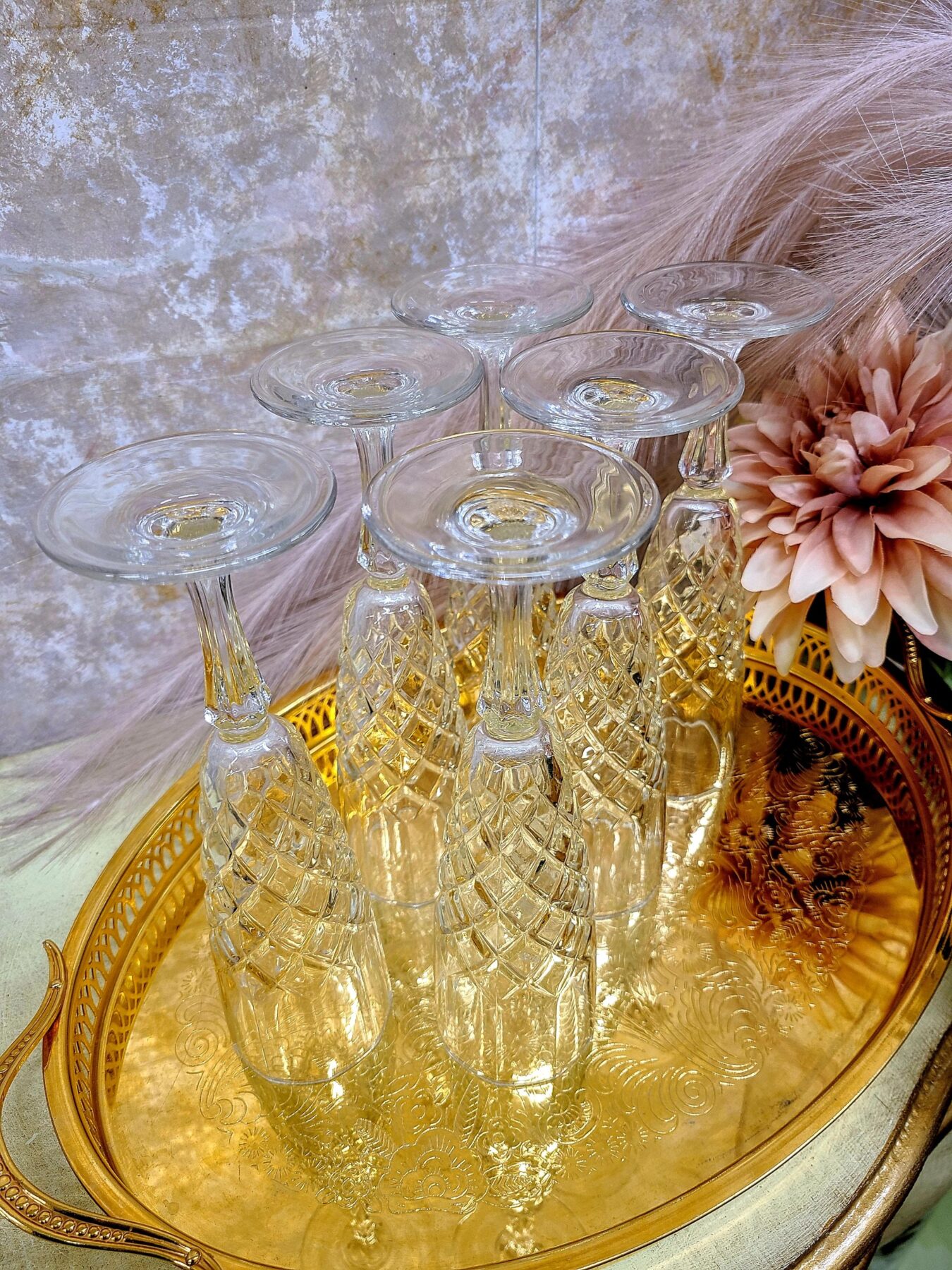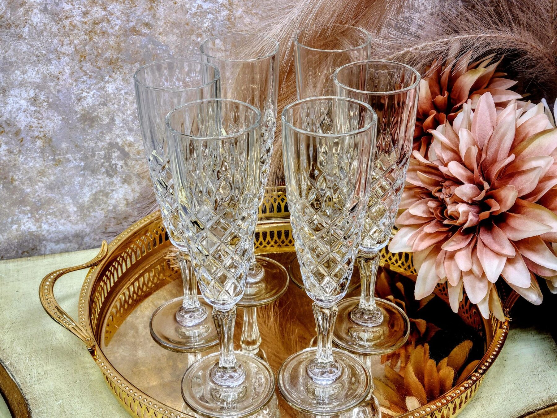 Elegantse teemantmustriga prantsuse šampanjapokaalid – sädelev luksus ja ajatu romantika igal pidulaual.