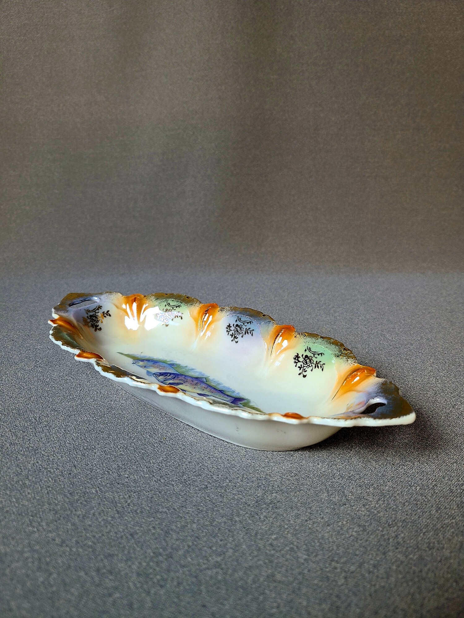 Võluv väike portselanist liud/ vaagen. Pastelsed toonid on nagu õrn päikeseloojang. Kala ja kuldse dekooriga liud on tõeline pilgupüüdja. Iga detail on hoolikalt kujundatud, luues harmoonilise terviku.