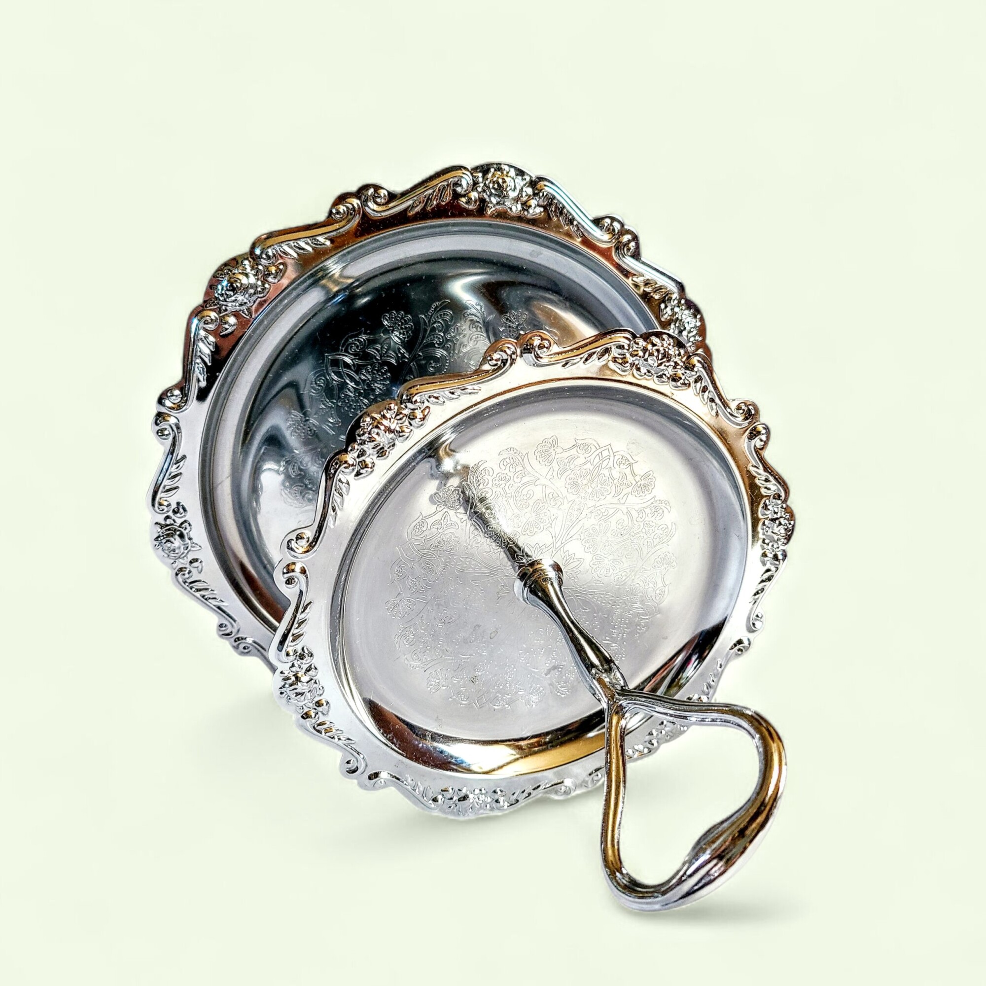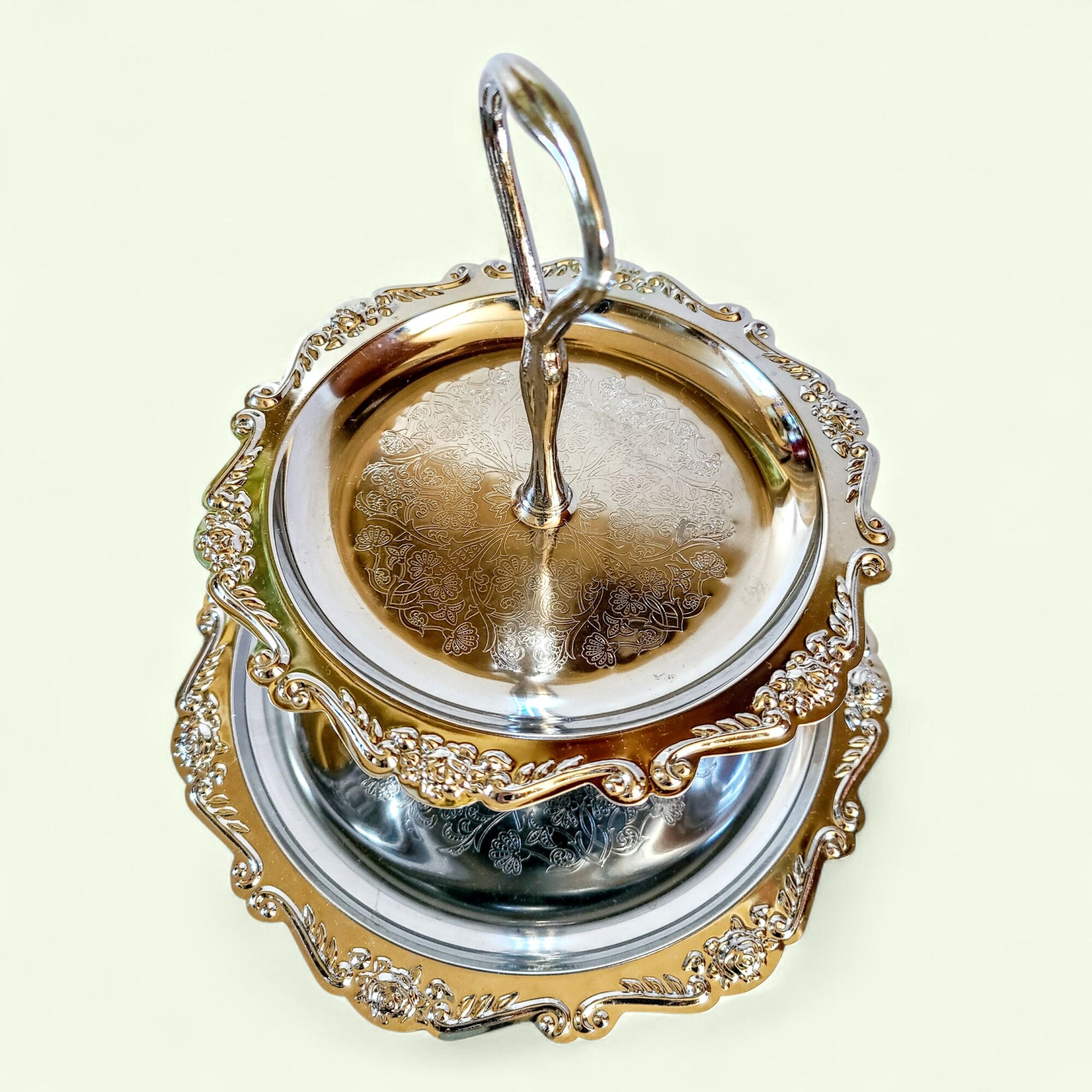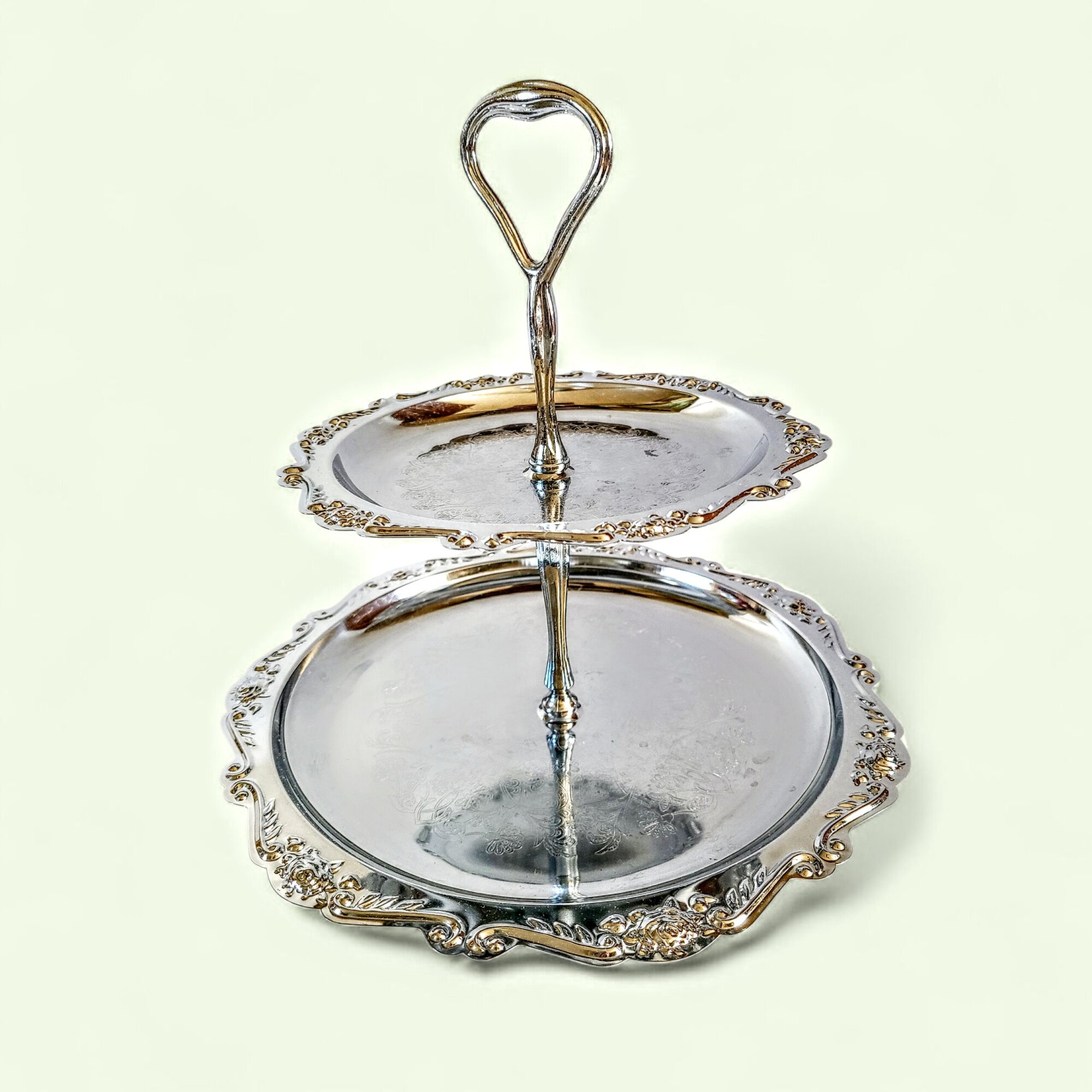Mõnikord ilmub mõni ese, mis ei ole lihtsalt tarbeasi – vaid mälestus ajast, mil kõik säras pisut pehmemalt ja aeg näis kulgevat aeglasemalt. Luksuslik hõbedane korrusvaagen on just see ime. Vaagna siidiselt helkiv pind, õrnalt reljeefne serv ja lilleline graveering räägivad lugusid vaiksetest pärastlõunatest, mil kristallkõlin ja lillelõhn täitsid õhu.