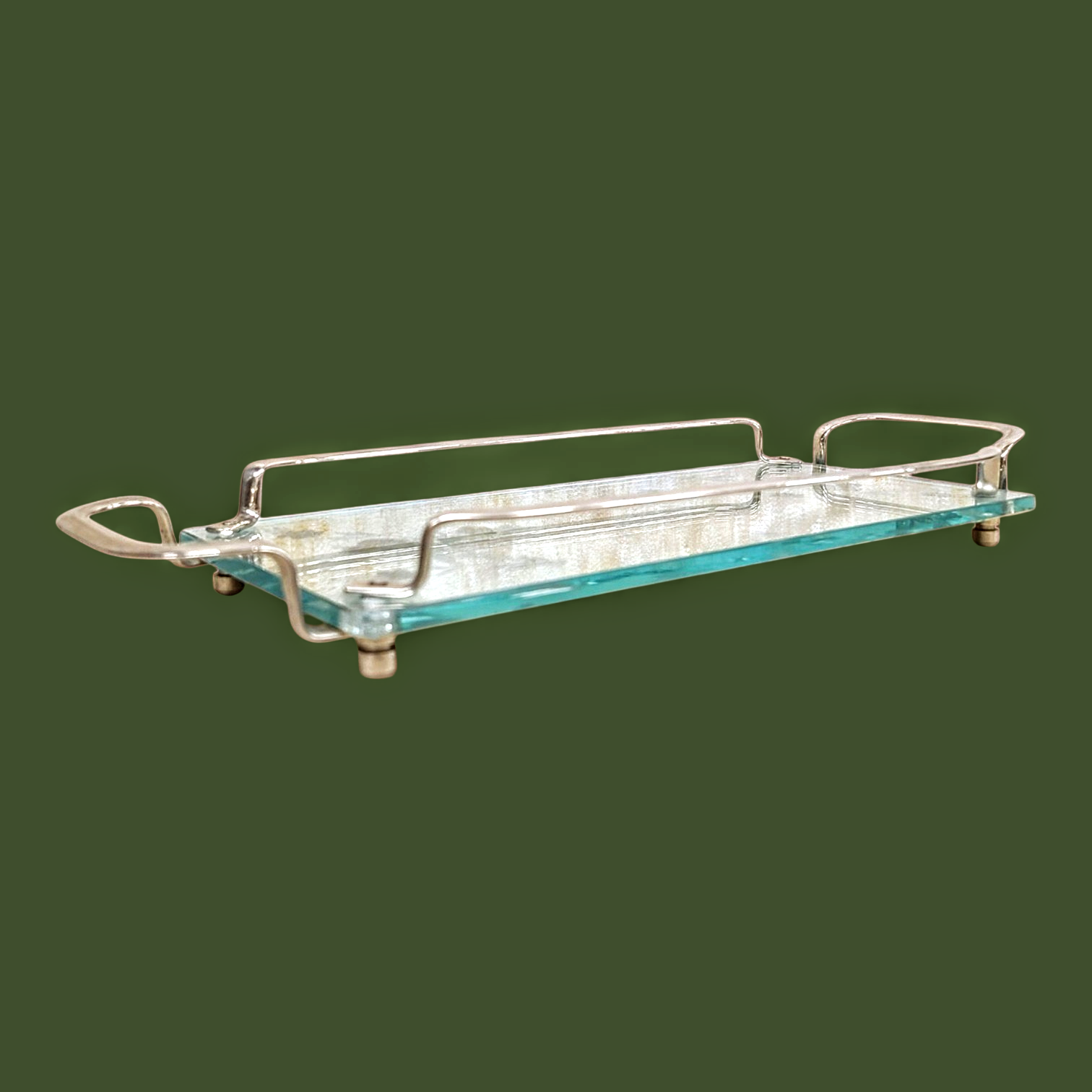 Kroomitud käepidemed lisavad kandikule kindla vormi ja ajastu hõngu – tasakaalu ilu ja praktilisuse vahel. Neli väikest kuuljalga tõstavad õrnalt pinnast kõrgemale, andes kerge ja peaaegu hõljuva ilme.