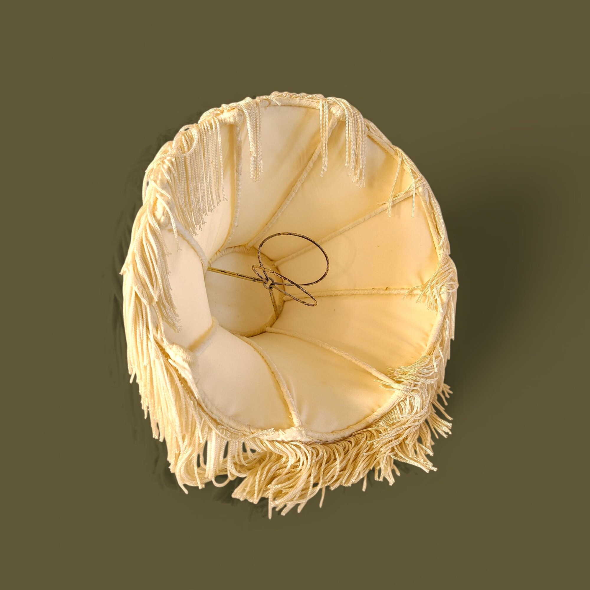 Klassikaline sametisest kangast kuppel, mida kaunistab õrn narmasääris ja kuldne pitsiriba, loob tunde nagu ajas tagasi rändaks – sinna, kus lugusid loeti paberkandjal ja aeg voolas oma soodu.