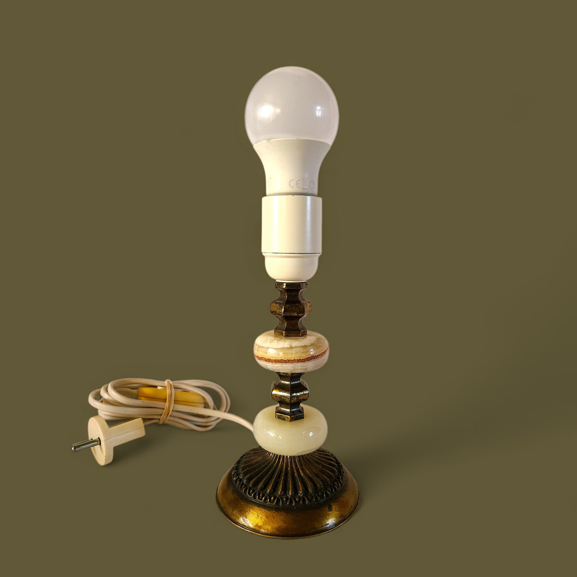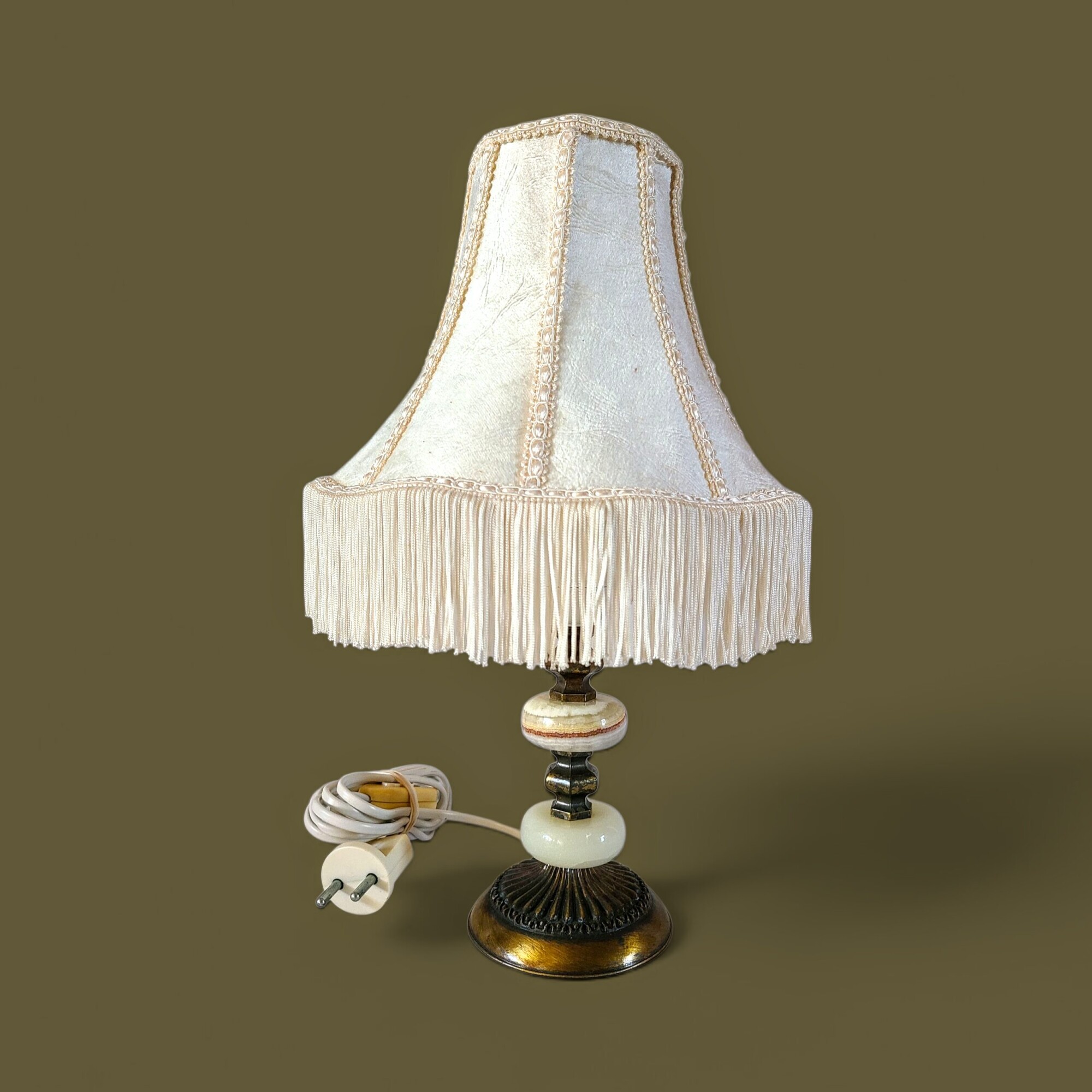 Messingitoonis jalg koos piimjalt valge detailiga lisab lambile väärikat retrohõngu ja viimistletust.