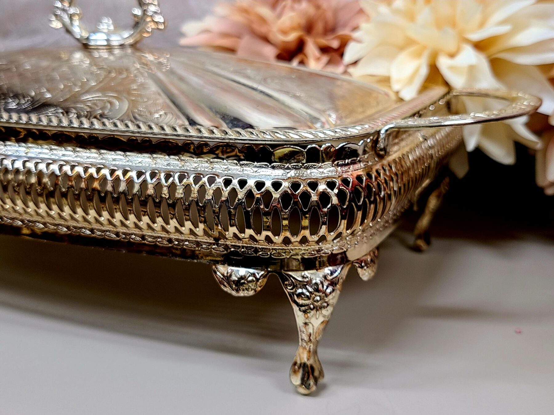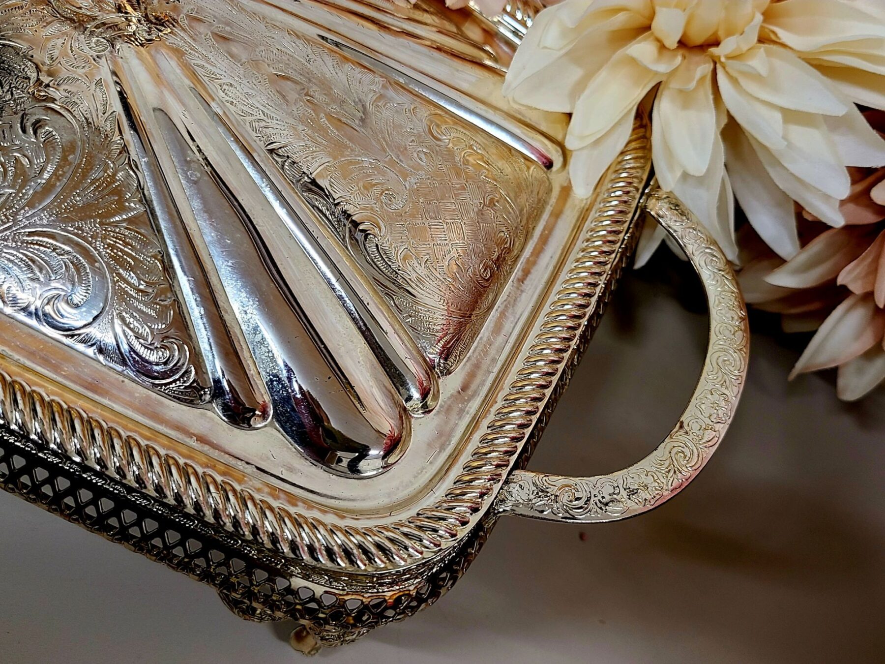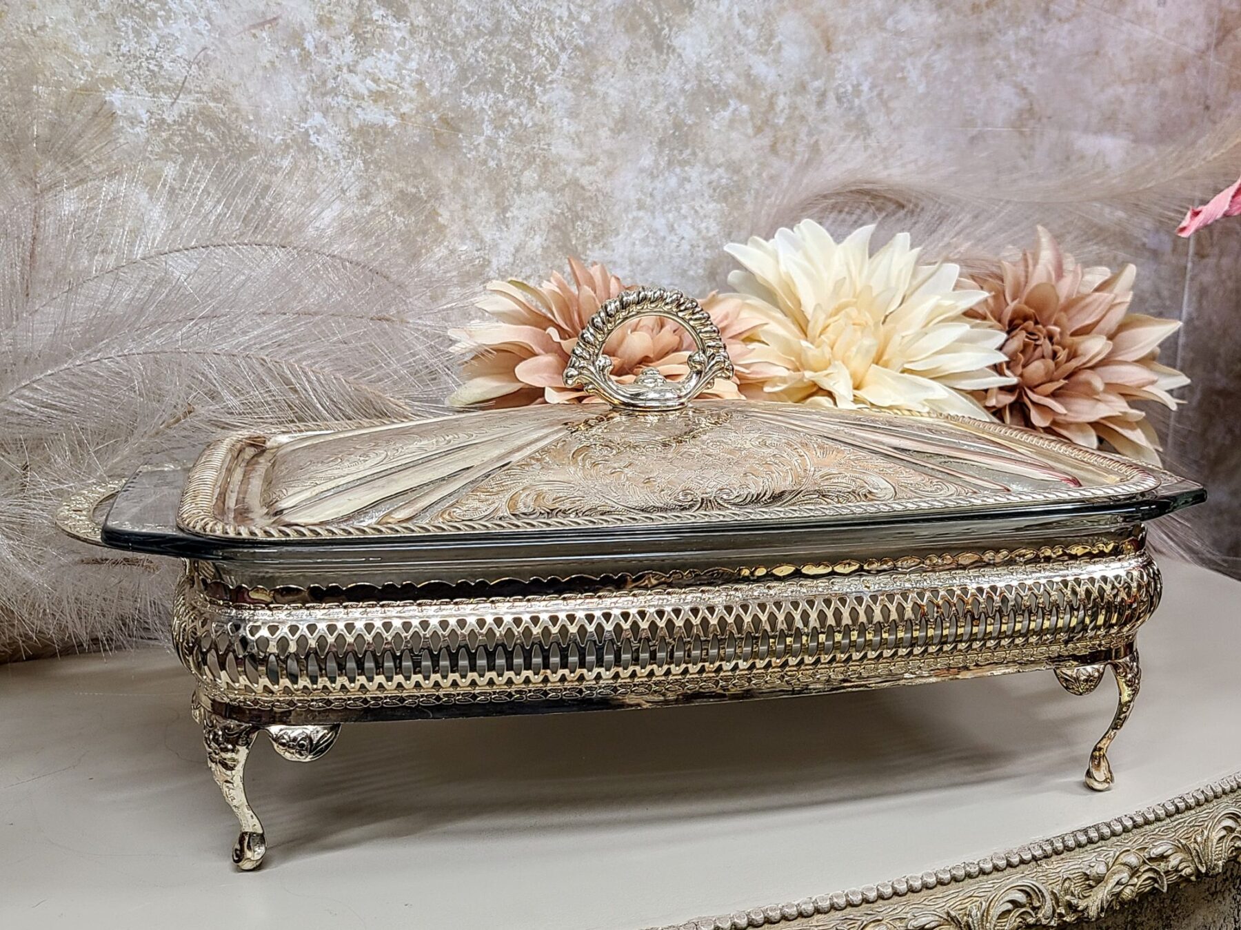 Inglismaal valmistatud nõu ühendab endas rikkalikult graveeritud hõbetatud raami ja kuumakindla klaasist vormi, mis hoiab toidu soojana ning esitluse laitmatuna. Kaas peegeldab küünlavalgust ja õhtust suminat, justkui sosistades lugusid varasematest aegadest.