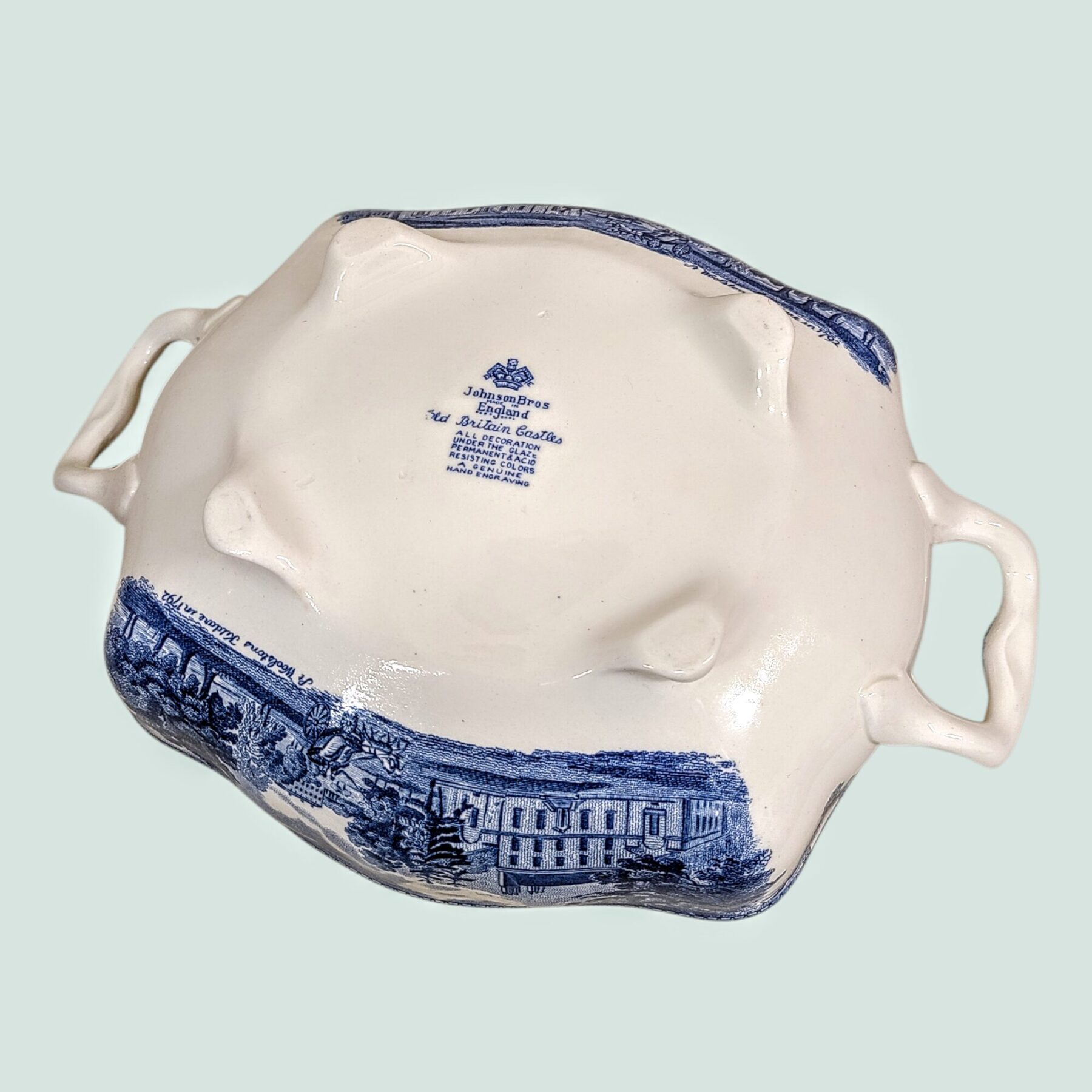 Elegantne ja detailirohke tirin on loodud 20. sajandi esimesel poolel maailmakuulsa Inglise keraamikatootja Johnson Brosi poolt. Old Britain Castles sarja muster avab vaate ajaloolistele Inglise lossidele ja maastikele, tuues esile inglispärase rahu ja vaoshoitud romantika – justkui vana gravüür reisipostkaart möödunud aegadest.