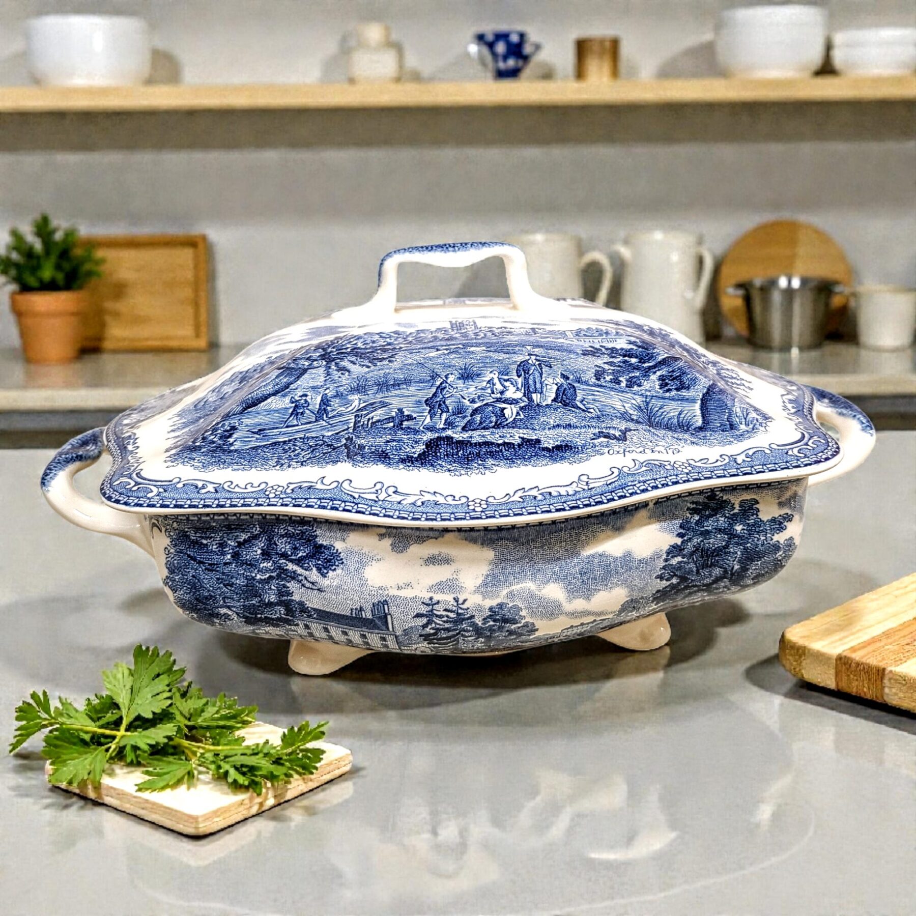 Sinivalge keraamika viib meid romantilisele rännakule läbi vana Inglismaa maastike, kus kivist lossid ja vaiksed teerajad seisavad kui ajatud tunnistajad möödunud aegadest.