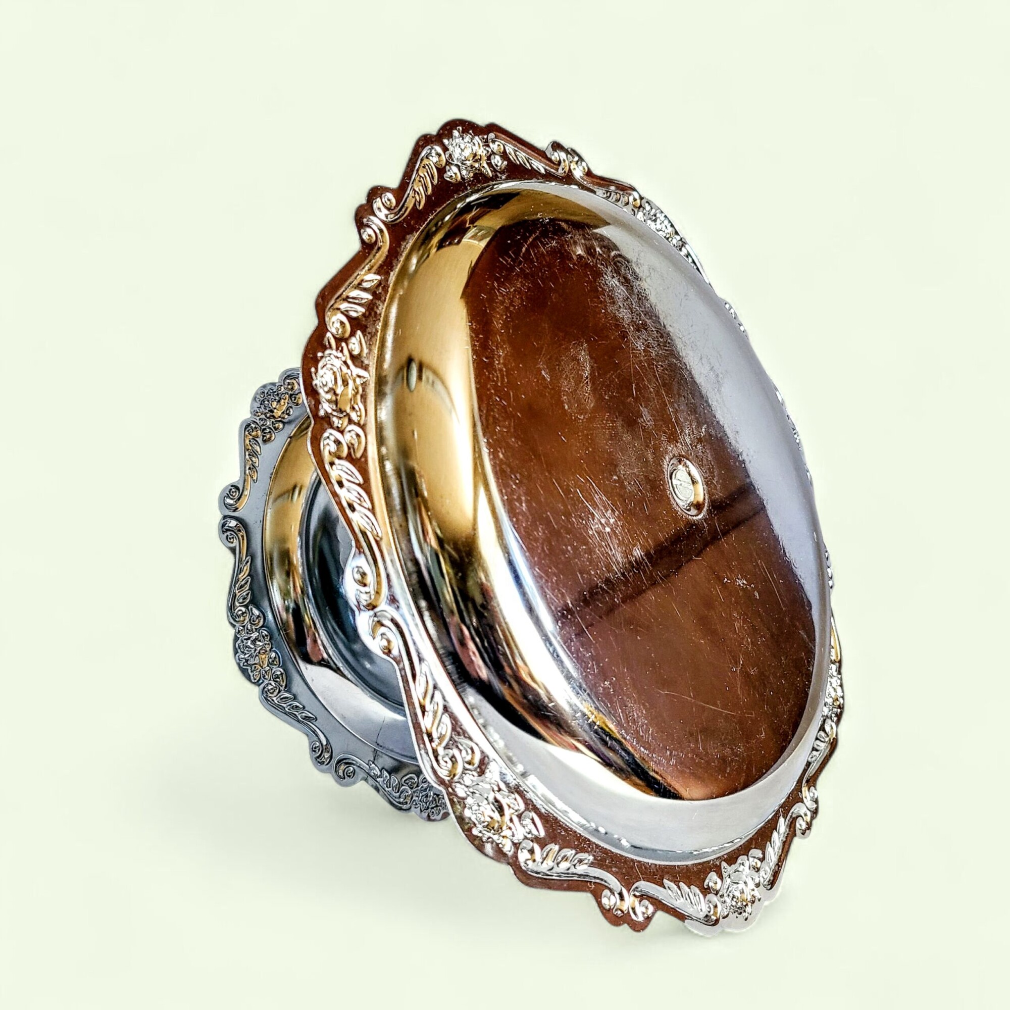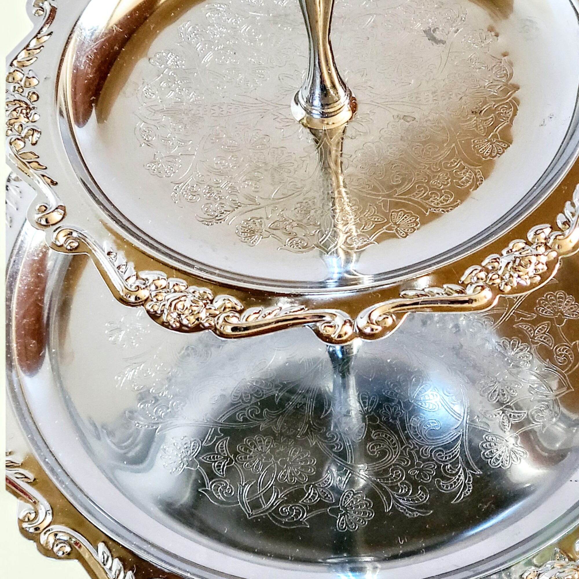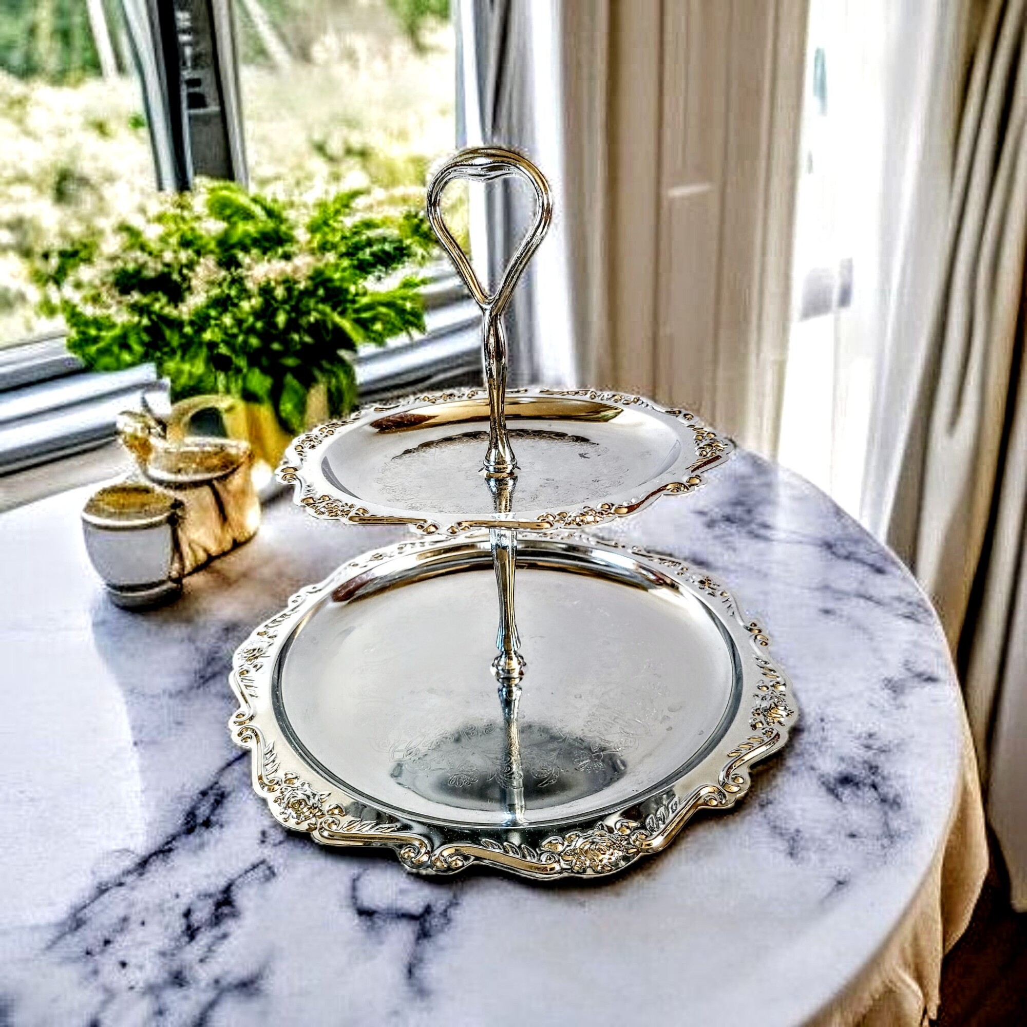 Mõnikord ilmub mõni ese, mis ei ole lihtsalt tarbeasi – vaid mälestus ajast, mil kõik säras pisut pehmemalt ja aeg näis kulgevat aeglasemalt. Luksuslik hõbedane korrusvaagen on just see ime. Vaagna siidiselt helkiv pind, õrnalt reljeefne serv ja lilleline graveering räägivad lugusid vaiksetest pärastlõunatest, mil kristallkõlin ja lillelõhn täitsid õhu.